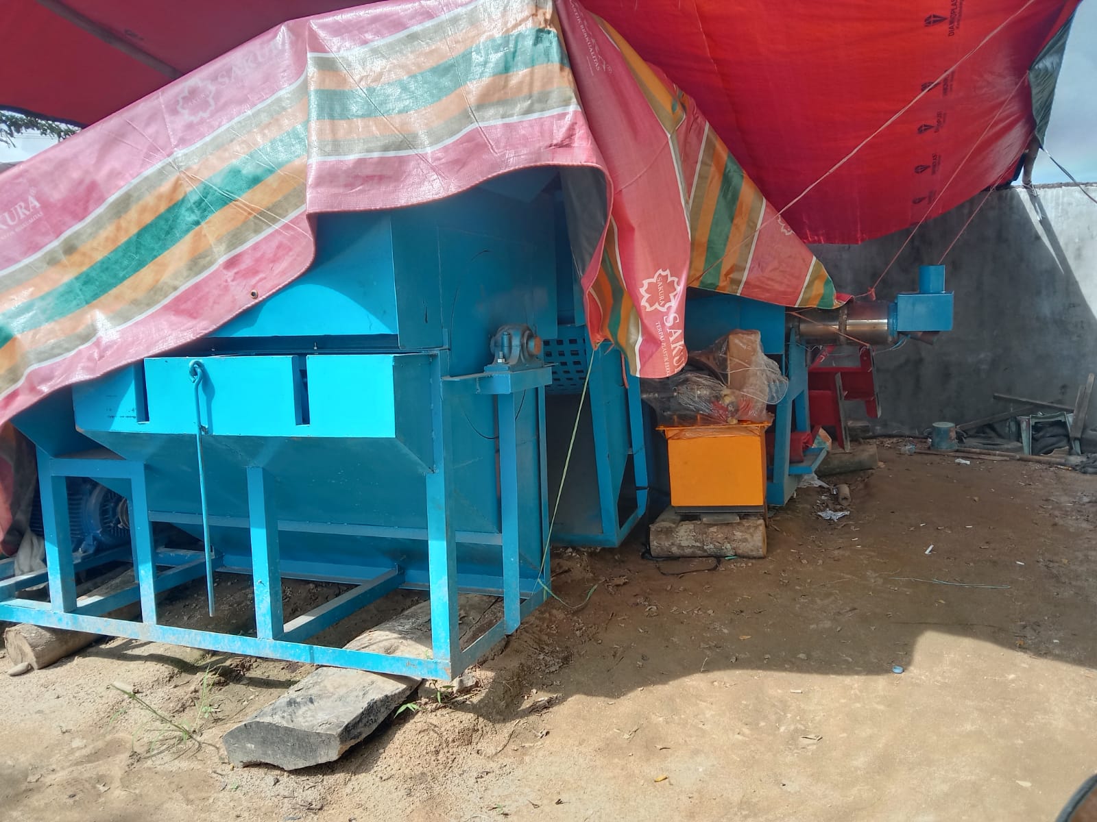 Mesin tersebut ditutupi terpal, bahkan bakunya dominasi dari besi, kemudian di cat biru.