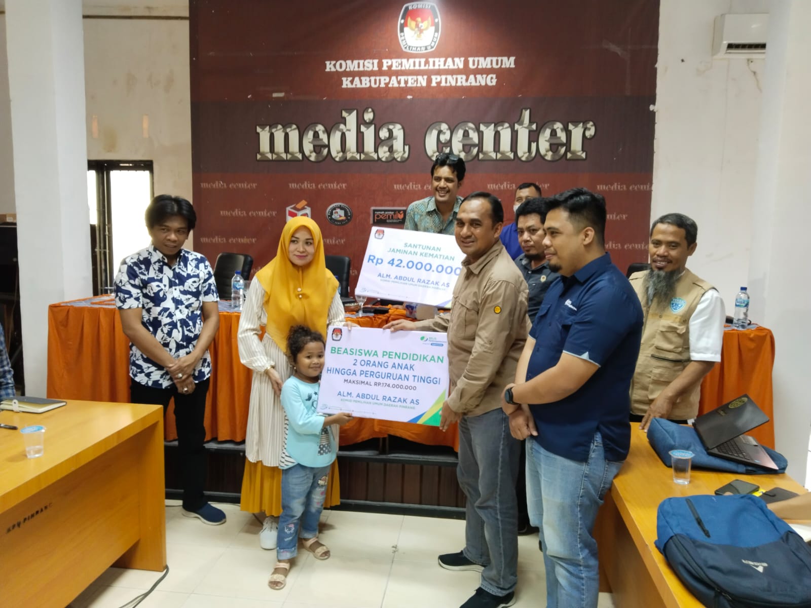 Penyerahan manfaat program Jaminan Kematian (JKM) ini diberikan langsung kepada ahli waris anggota KPU Kabupaten Pinrang pada kegiatan Bimbingan Teknis yang diselenggarakan oleh KPU Kabupaten Pinrang.