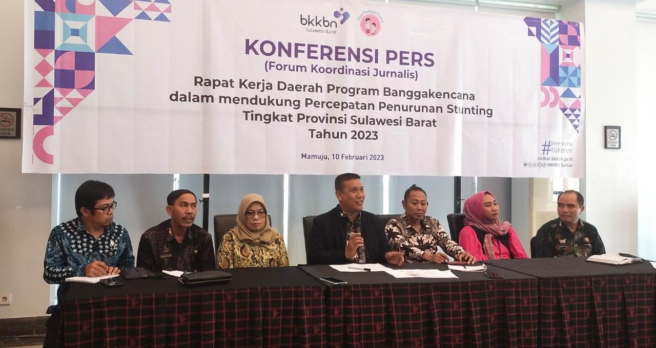MAMUJU, RAKYATSULBAR.COM — BKKBN Perwakilan Sulbar gelar Konferensi Pers terkait hasil Rapat Kerja Daerah (Rakerda) Program Pembangunan Keluarga, Kependudukan dan Keluarga Berencana (Bangga Kencana) Tingkat Provinsi Sulawesi Barat tahun 2023 dilaksanakan selama dua hari di Ballroom Hotel d’Maleo Mamuju, Jumat (10/2/23).