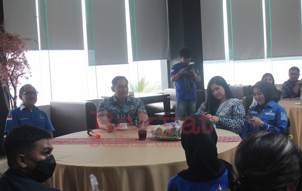 MAMUJU, RAKYATSULBAR.COM — Ketua Umum Partai Demokrat, Agus Harimurti Yudhoyono (AHY) bersama istri Annisa Pohan temui Influencer dan Tiktokers untuk berdialog bersama di Hotel d’Maleo Mamuju, Selasa, (28/2/23).