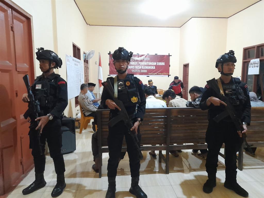 Bukan hanya jajaran Polres Bone yang terlibat dalam pengamanan, Polres Sinjai juga melibatkan personel Batalyon C Pelopor untuk pengamanan di masing-masing desa yang melaksanakan pesta demokrasi.