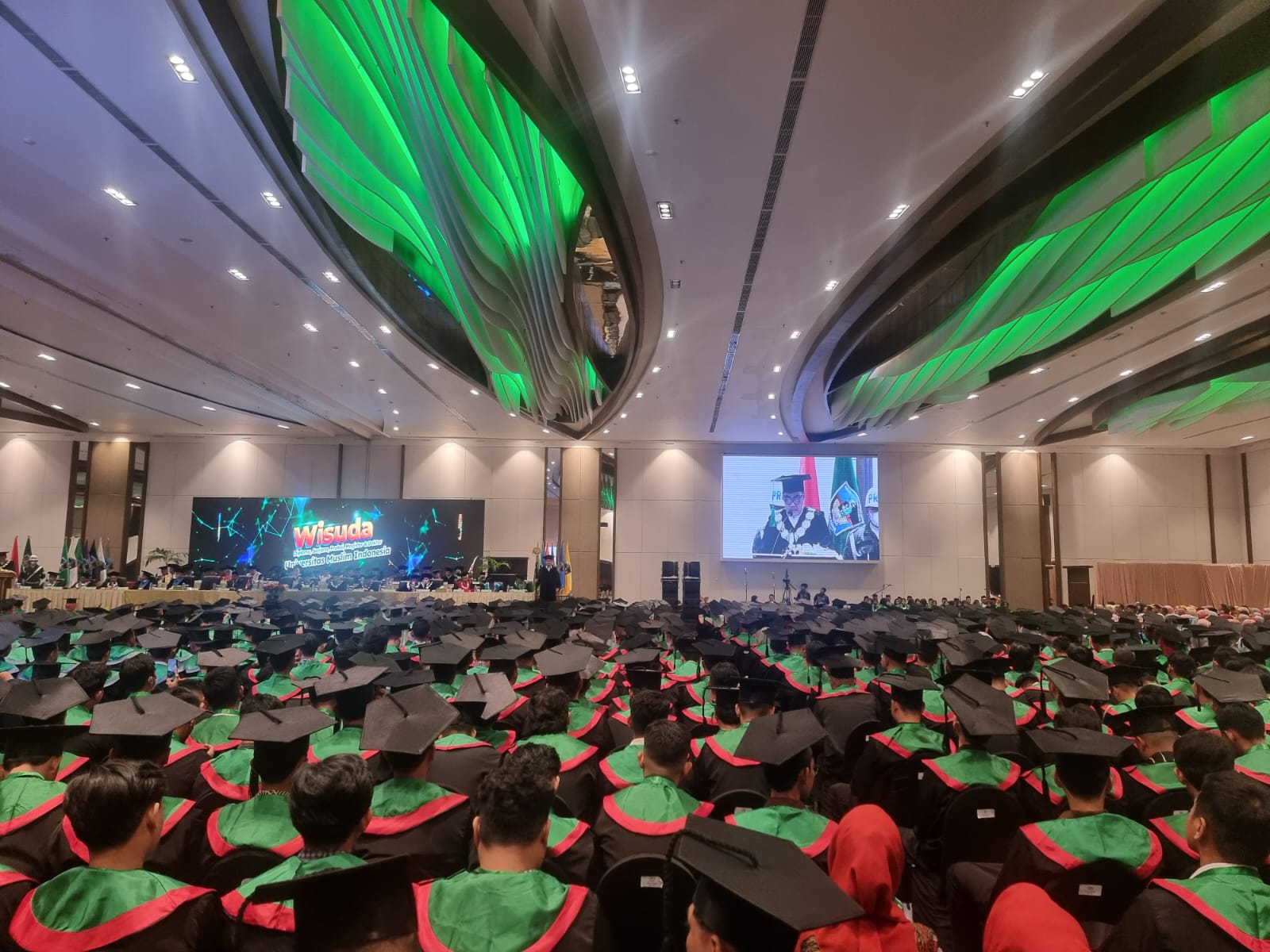 “Wisuda periode pertama 2.631 orang. Terdiri dari diploma III sebanyak 18 orang, S1 sebanyak 2001 orang, Profesi 341 orang, magister 225 orang, doktor 46 orang,” ujarnya saat memberikan pidato luar biasa pelepasan mahasiswa berstatus alumni.