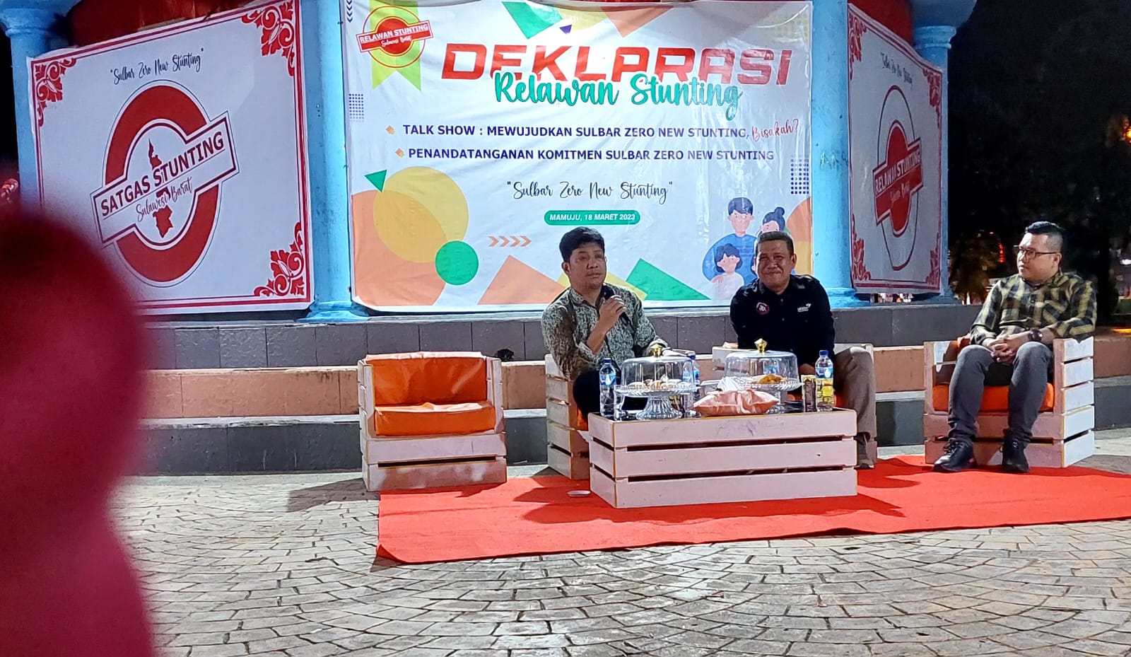 MAMUJU, RAKYATSULBAR.COM — Relawan Stunting Provinsi Sulawesi Barat (Sulbar) Gelar deklarasi dan Talk Show bersama para stakeholder, di Taman Karema Mamuju, melalui tema “Mewujudkan Sulbar Zero New Stunting, Bisakah,? Risbar Tegaskan Kerja Kolektif. Minggu(19/3).