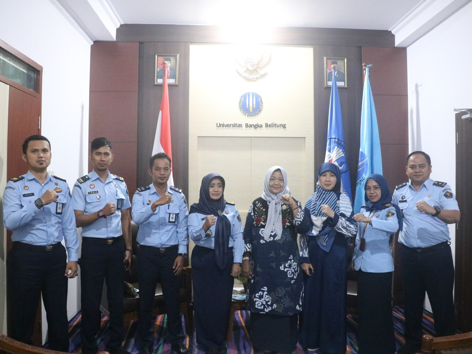 Kedatangan Kadivyankumham Eva dan tim disambut baik oleh Wakil Rektor II Universitas Bangka Belitung, Dr. Sri Rahayu, S.H., M.H dan Kepala Biro Akademik, Kemahasiswaan dan Kerjasama, Hesty, S.Si., M.Pd.