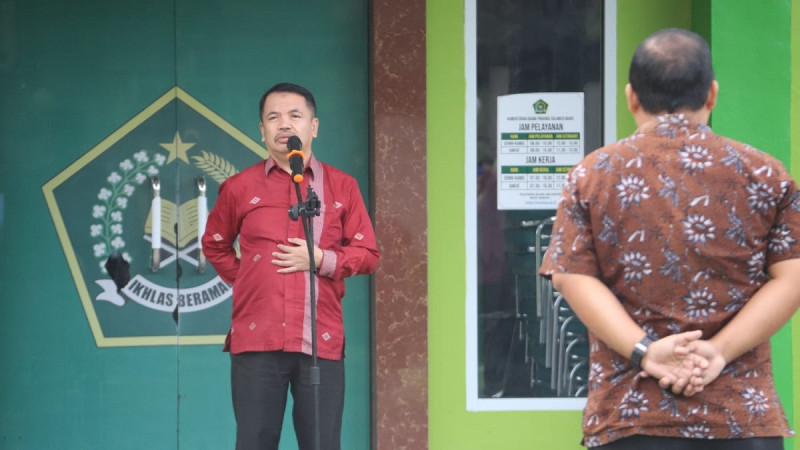 MAMUJU, RAKYATSULBAR.COM –– Di hari kedua pasca cuti idul fitri Kabag TU H. Suharli sebagai Pembina Apel pagi yang dilaksanakan di halaman Kantor Kanwil Kemenag Sulbar, Kamis (27/4) menyampaikan 3 poin kepada para peserta apel.