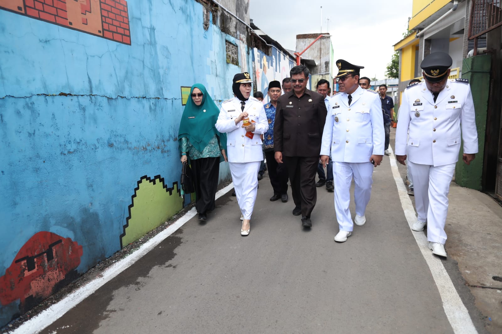 MAKASSAR, RAKYATSULBAR.COM — Wakil Wali Kota Makassar, Fatmawati Rusdi selepas menghadiri upacara peringatan hari Otonomi Daerah XXVII Tahun 2023, yang digelar di anjungan pantai losari, mendampingi kepala daerah berkunjung ke salah satu lorong wisata (Longwis) yang terletak di Kecamatan Tamalate.