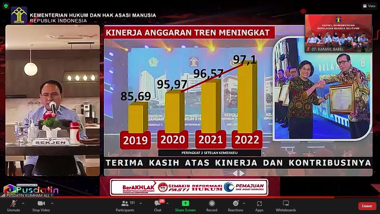 PANGKALPINANG, RAKYATSULBAR.COM – Jajaran Kantor Wilayah Kementerian Hukum dan HAM Kepulauan Bangka Belitung ikuti arahan Sekretaris Jenderal Kemenkumham RI, Komjen Pol. Andap Budhi Revianto secara virtual dari Ruang Rapat Kantor Wilayah, Selasa (23/5).