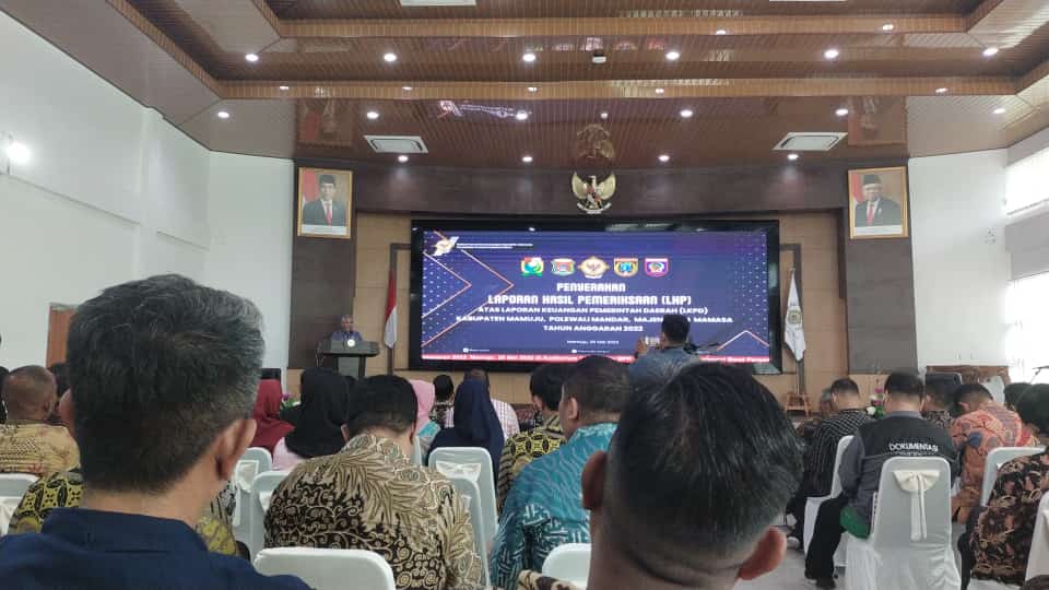 MAMUJU, RAKYATSULBAR.COM — Badan Pemeriksa Keuangan (BPK) Republik Indonesia Perwakilan Provinsi Sulawesi Barat (Sulbar), melakukan Penyerahan Laporan Hasil Pemeriksaan atas Laporan Keuangan Pemerintah Daerah (LKPD) Kabupaten Mamuju, Polewali Mandar, Majene dan Mamasa, tahun Anggaran 2022, Jumat (26/5)