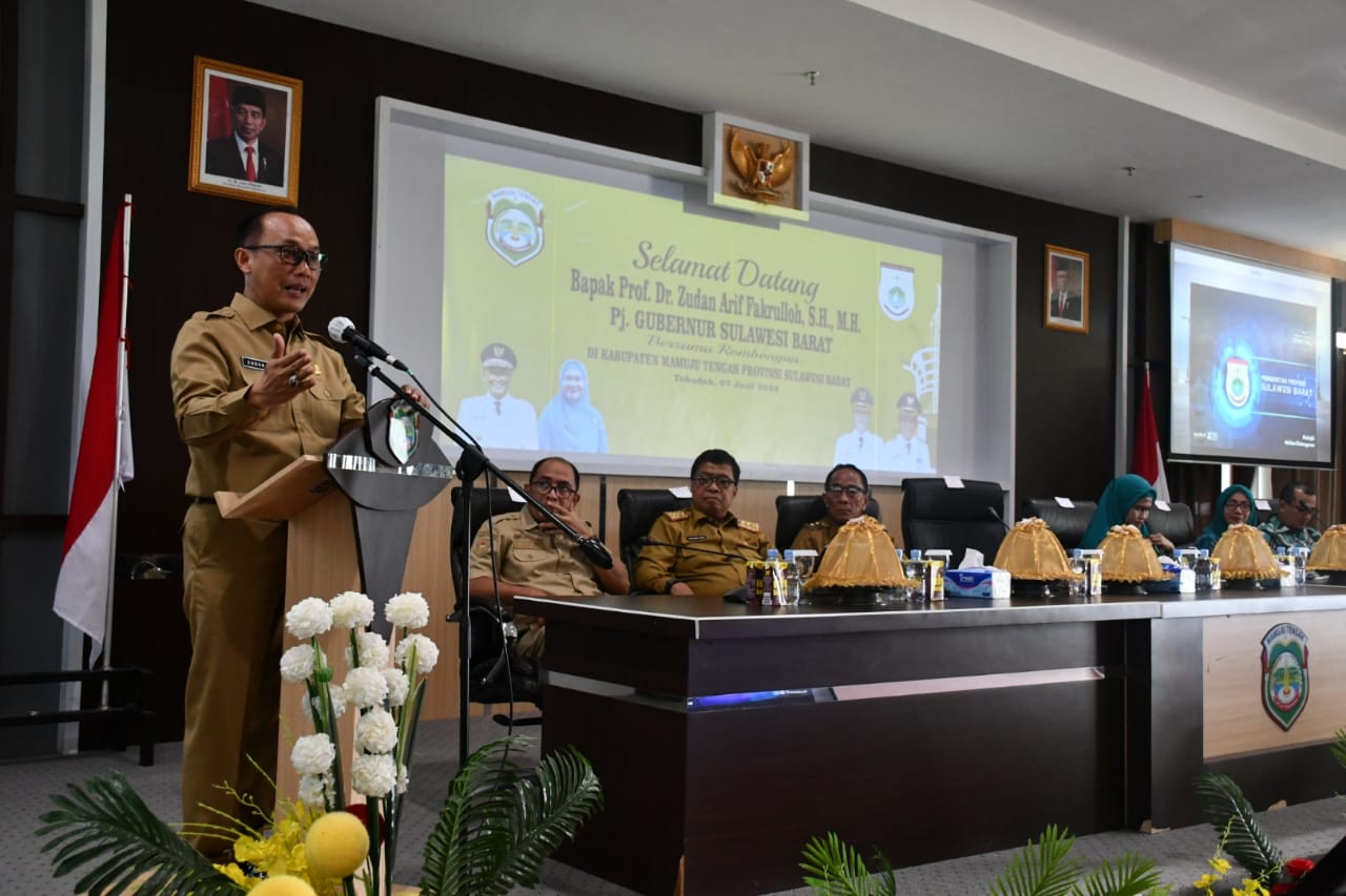 MATENG, RAKYATSULBAR.COM— Setelah dari Pasangkayu, Pj Gubernur Sulbar Zudan Arif Fakrulloh bersama Pj. Ketua TP PKK Sulbar, Ny. Ninuk Triyanto Zudan melakukan rapat kerja dengan Pemkab dan seluruh forkopimda di Mamuju Tengah, Selasa (6/6).