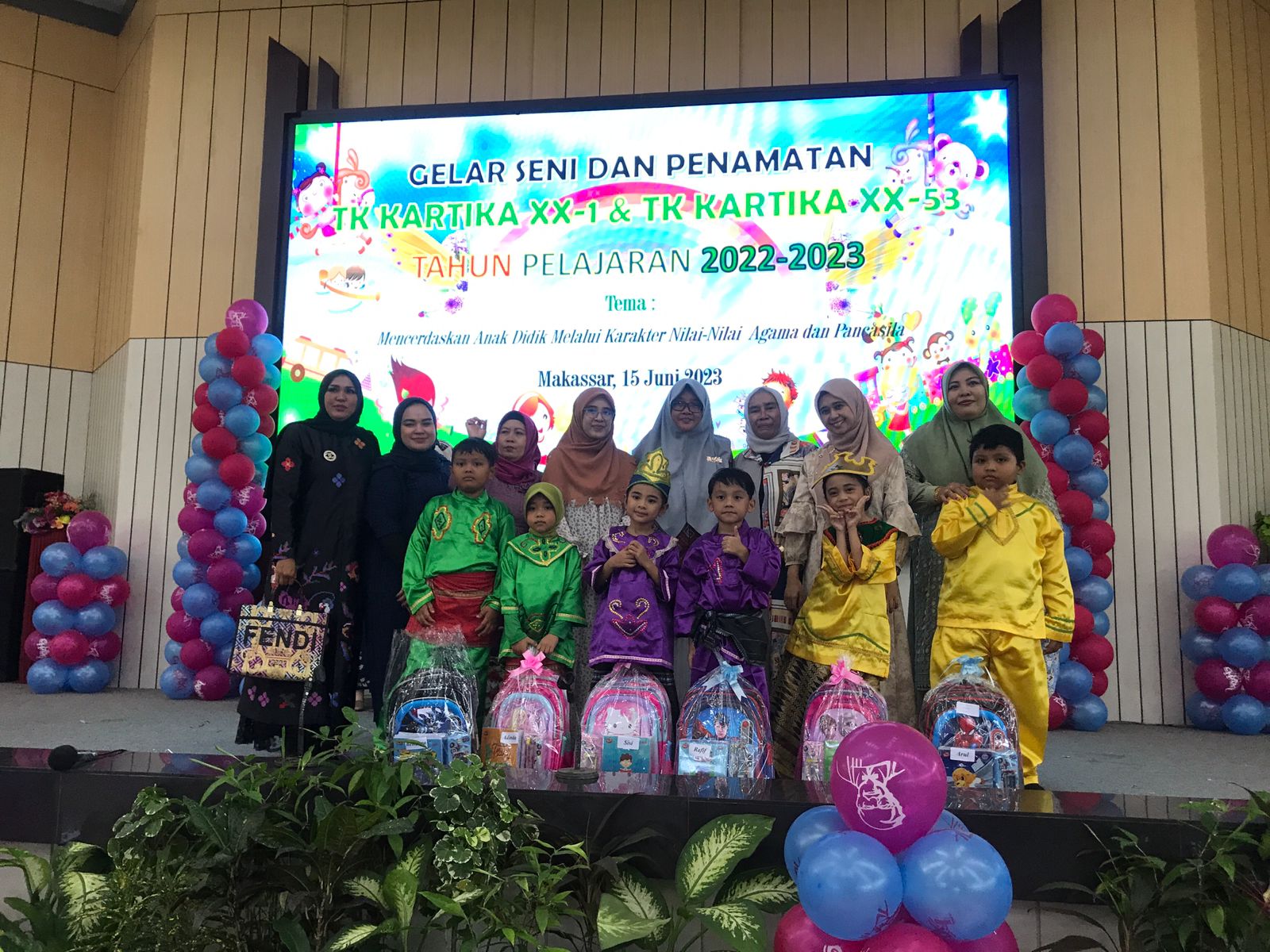 ” Hari ini kita dapat menyaksikan anak anak TK Kartika XX-1 dan TK Kartika XX-53 semakin mandiri , kemampuan skill dan sikap percaya diri sudah tumbuh berkembang tidak saja seni tapi juga kreatifitas lainya sesuai dengan bakatnya masing masing, semua ini tidak lepas dari peran ibu guru bekerjasama dengan orang tua murid dan tentunya akan menjadi kenangan yg indah”