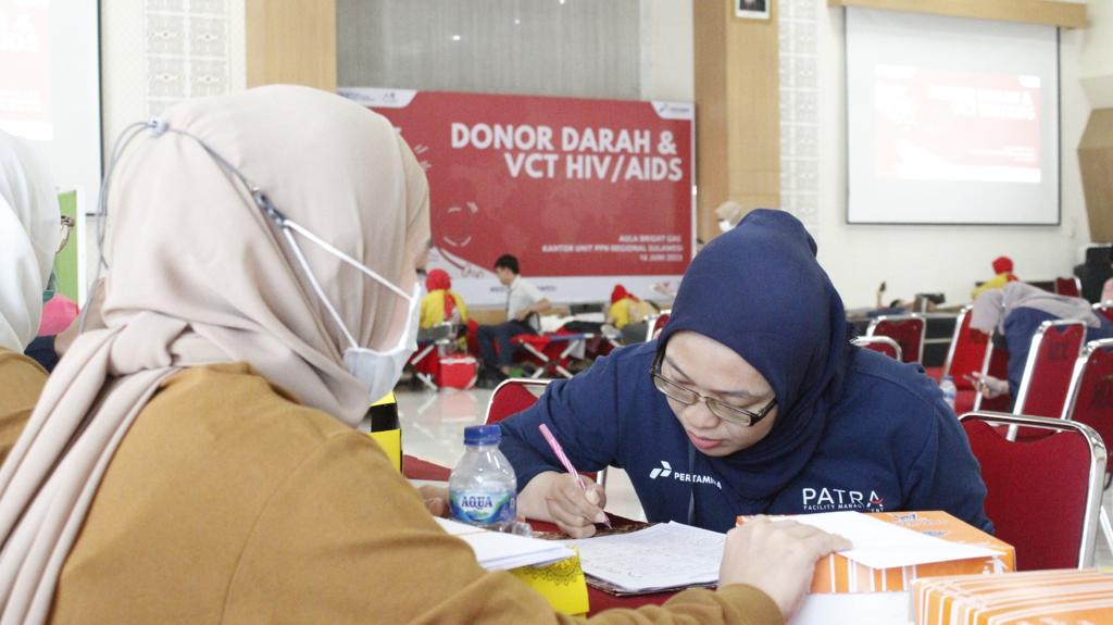 Kegiatan ini dilaksanakan dalam rangka memperingati hari donor darah sedunia dengan mengusung tema “Give Your Blood For The Life Of Others”. Dalam pelaksanaannya perusahaan bekerja sama dengan PMI Kota Makassar dan dilaksanakan di Kantor Unit PT Pertamina Patra Niaga Regional Sulawesi (16/5) yang diikuti oleh perwira dan tenaga alih daya dengan total peserta sebanyak 148 orang dengan jumlah peserta yang donor sebanyak 130 orang.