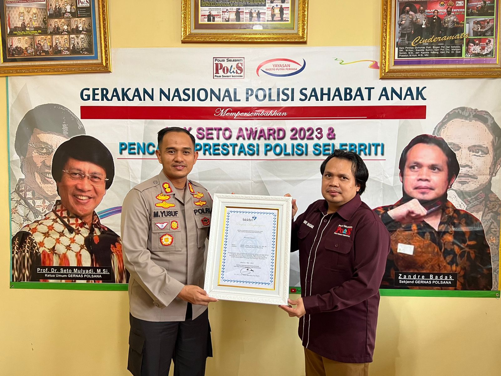 Penghargaan tersebut diberikan dalam kerjasama antara Polisi Selebriti, Badan Kependudukan Keluarga Berencana (BKKBN), dan Prof. Dr. Seto Mulyadi, Ketua Umum GERNAS POLSANA.