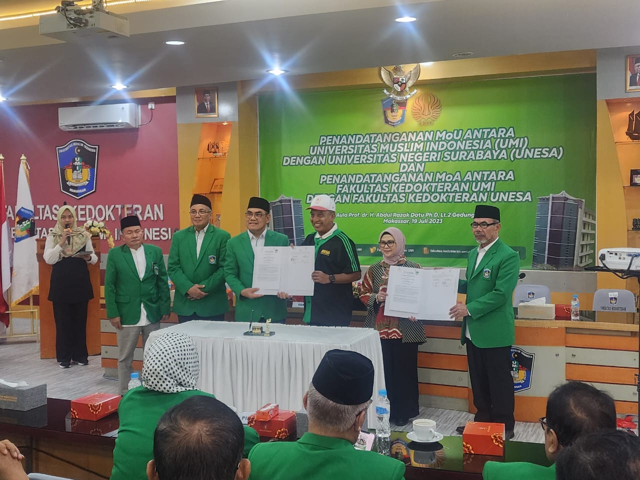 Dijelaskan, setelah mendapat rekomendasi pendirian Fakultas Kedokteran (FK) dari Kementerian Kesehatan. Maka Unesa gencar menjalin kerja sama dengan berbagai pihak di antaranya FK UMI untuk meminta bimbingan lewat kerjasama MoU.