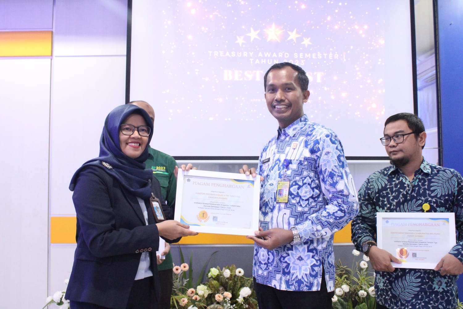 Penghargaan tersebut diserahkan pada 13 Juli 2023 lalu di Aula KPPN (Kantor Pelayanan Perbendaharaan Negara) Tanjungpandan oleh Kepala KPPN Tanjungpandan, Firza Yulianti, dan diterima langsung oleh Kepala Kantor Imigrasi Kelas II TPI Tanjungpandan, Suyatno.