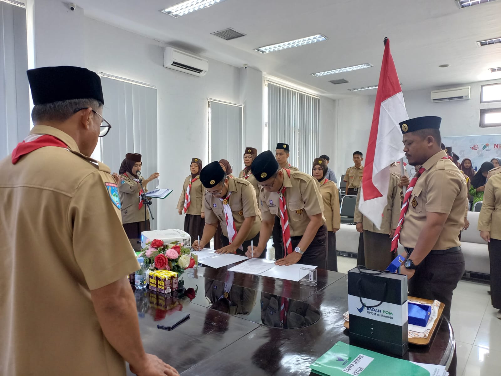 Pelantikan tersebut dilaksanakan di Aula Kantor BPOM di Mamuju yang dihadiri oleh pengurus Kwarcab gerakan pramuka Kabupaten Mamuju yang dirangkaikan dengan sosialisasi pengawasan obat dan makanan bersama calon anggota SAKA Kabupaten Mamuju, Rabu (16/8)