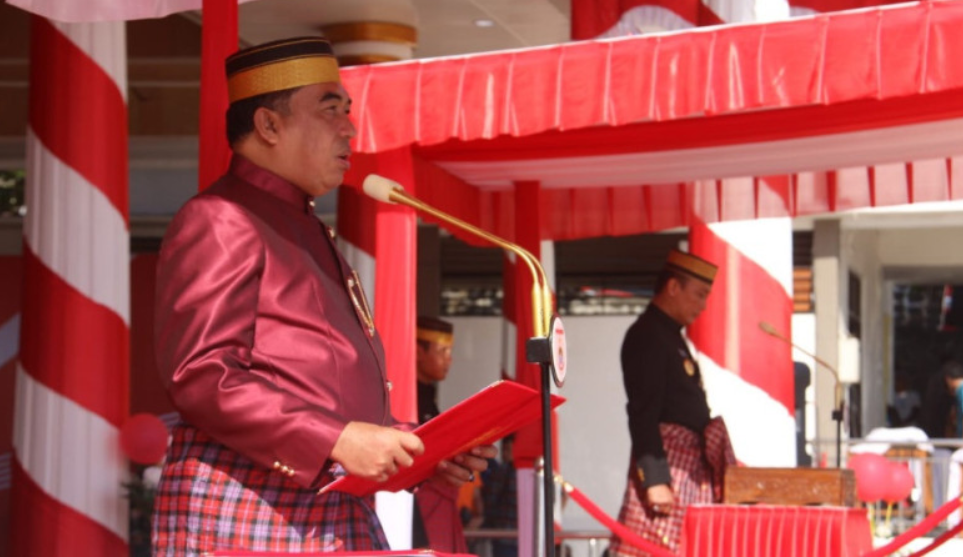 “Kobarkan semangat juang yang tak pernah redup, tumbuhkan kesadaran kebhinekaan sebagai falsafah hidup. Jauhkan dari semua gangguan dan ancaman yang menyelusup, semoga udara kemerdekaan senantiasa kami hirup,” ungkapnya dengan penuh semangat juang.