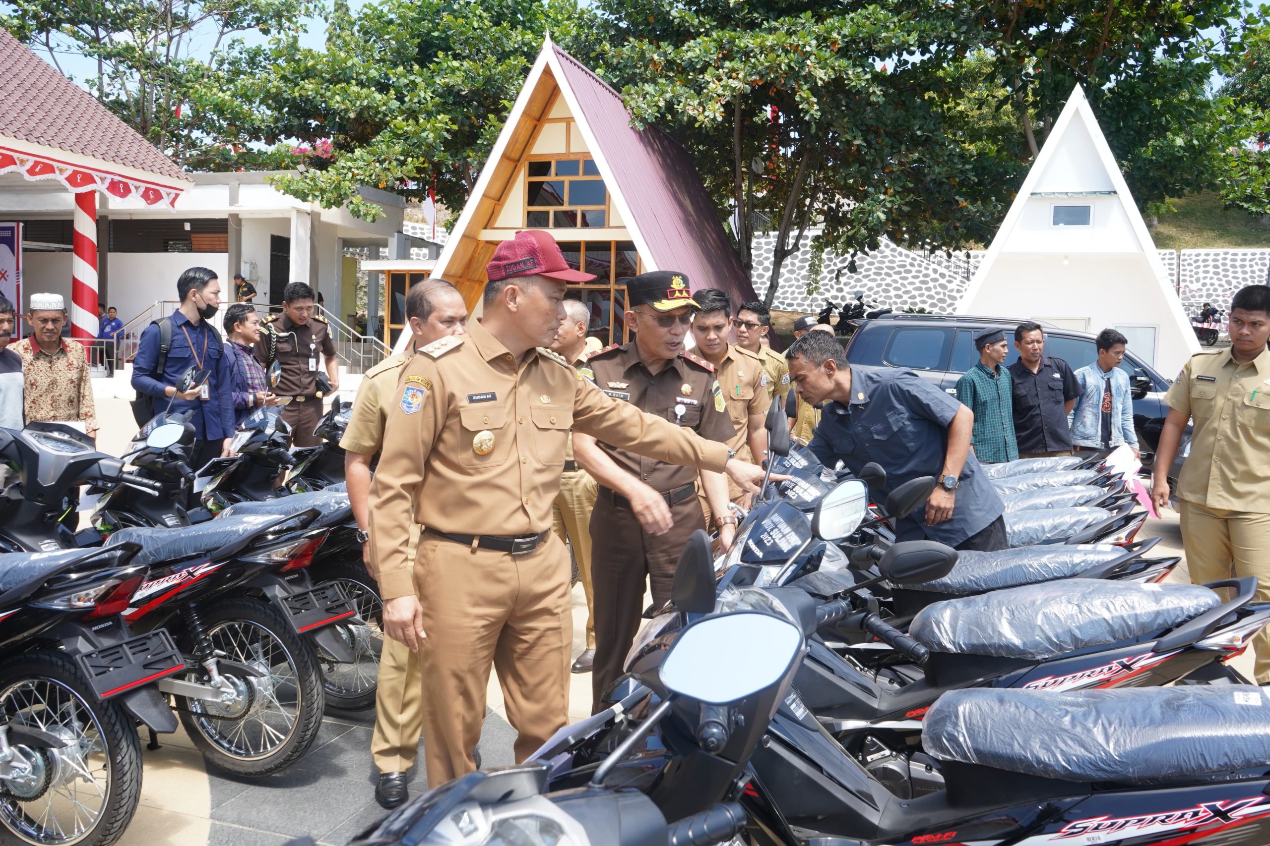 Diketahui bantuan yang diserahkan sebanyak 27 unit Roda empat dan 50 unit Roda dua, serta 138 unit mesin tempel perahu nelayan.
