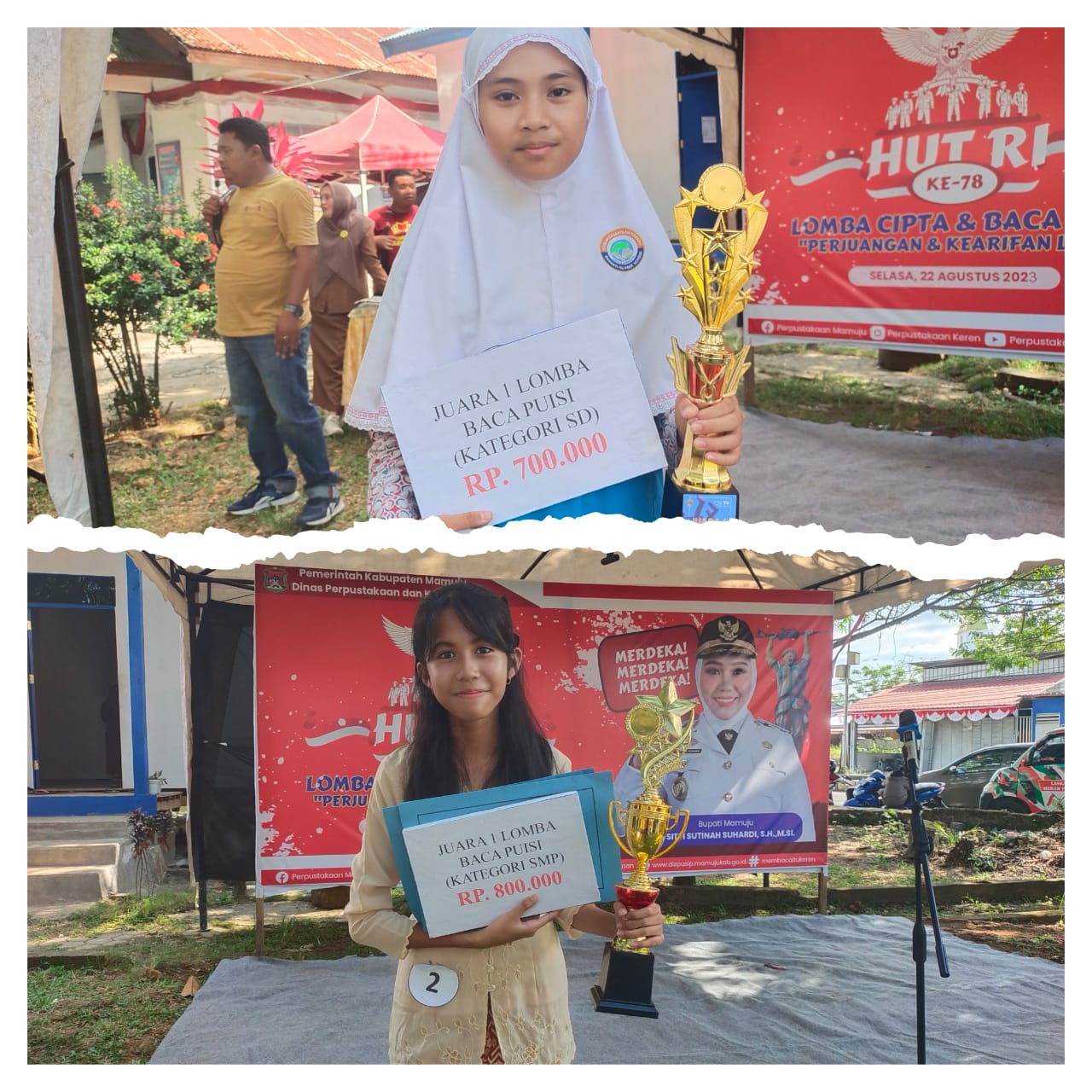 Hal sama pun juga diraih oleh Regita Akwila Wallang, yang merupakan siswa kelas IX SMPN 2 Mamuju yang menjadi juara 1 lomba baca puisi kemerdekaan yang berlangsung di halaman Perpustakaan Kabupaten Mamuju, Selasa (22/8).