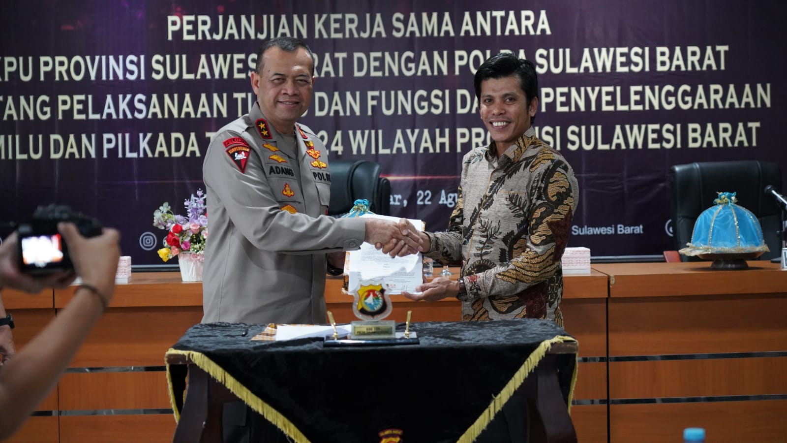 MAMUJU, RAKYATSULBAR.COM — Menjelang puncak pesta demokrasi tahun 2024 mendatang, Kepolisian Daerah (Polda) Sulawesi Barat (Sulbar) menjalin kerjasama dengan Komisi Pemilihan Umum (KPU) Provinsi Sulawesi Barat.