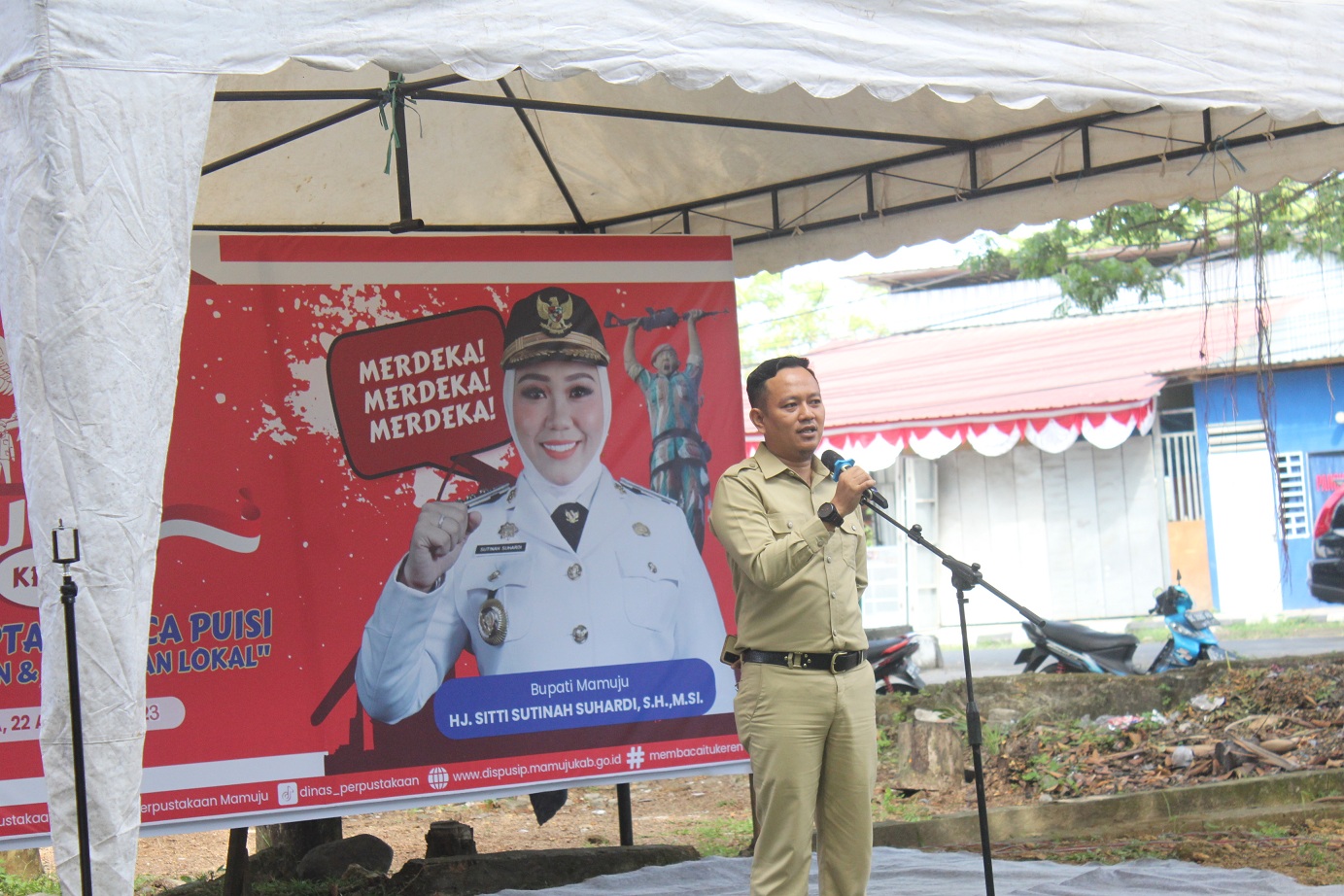 MAMUJU, RAKYATSULBAR.COM — Semarak dalam memperingati HUT RI ke-78, Dinas Perpustakaan dan Kearsipan Daerah Kabupaten Mamuju gelar Lomba Cipta dan Baca Puisi, Selasa (22/8).