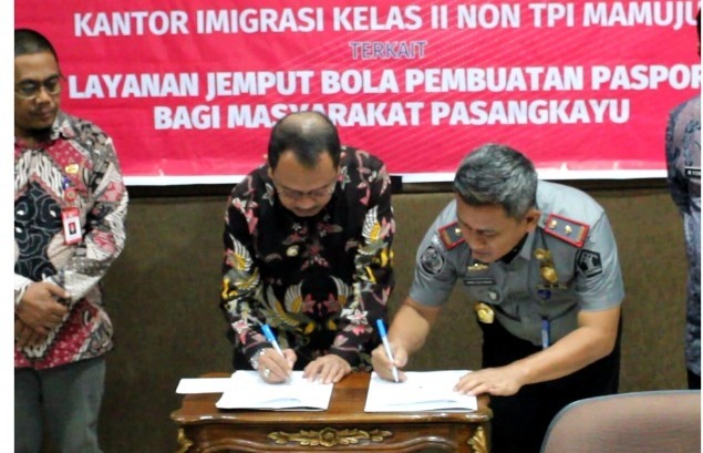 “Kerja sama tersebut ditandai dengan penandatanganan kesepakatan dengan Pemerintah Kabupaten Pasangkayu terkait layanan Jemput Bola SIMAJU IDAMAN (Imigrasi Mamuju Kami Datang Melayani Anda) pembuatan paspor bagi masyarakat Pasangkayu” ujar Kepala Imigrasi Mamuju Andi Zulpikar Rasdin.