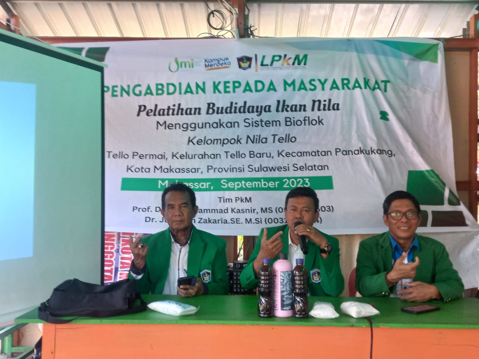 Kegiatan pengabdian ini di pinpim oleh ketua program Doktor Ilmu Perikanan (DIP) UMI, Dr. Junaidin Zakariah, mahasiswa Doktor Ilmu Perikanan Syarifuddin. Mereka juga mengawali giat penyuluhan terkait dengan teknologi bioflok dalam budidaya ikan nila.