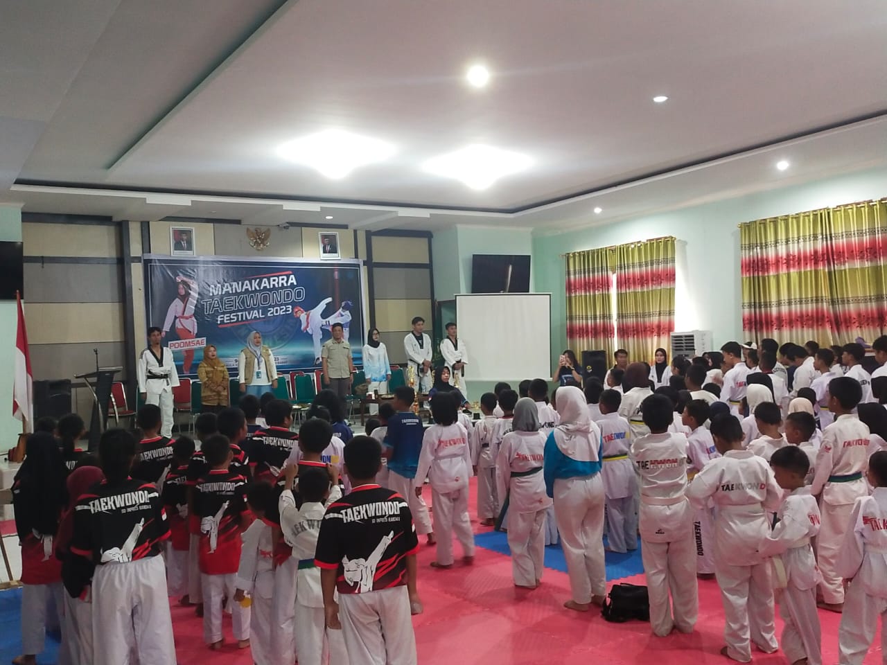 MAMUJU, RAKYATSULBAR.COM — Manakarra Taekwondo Festival 2023, tingkat SD, SMP, SMA se-Kabupaten Mamuju, Sulawesi Barat, (Sulbar), resmi dibuka, Sabtu (9/9) di aula Kantor Kemenag Sulbar.