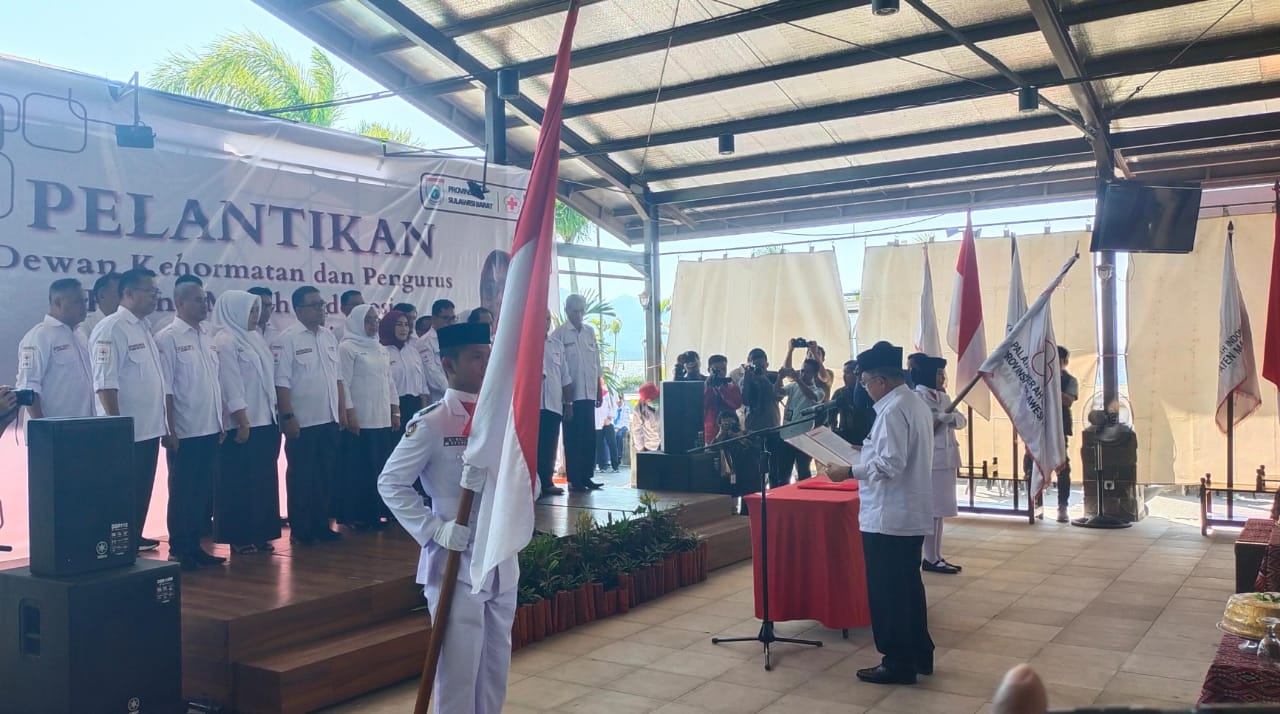 MAMUJU, RAKYATSULBAR.COM — Ketua Umum Palang Merah Indonesia (PMI) yang juga Mantan Wakil Presiden RI Jusuf Kalla melantik Dewan Kehormatan dan Pengurus Palang Merah Indonesia (PMI) Provinsi Sulawesi Barat (Sulbar), masa bakti 2023-2028 di hotel d’Maleo Mamuju, Kamis (21/9).