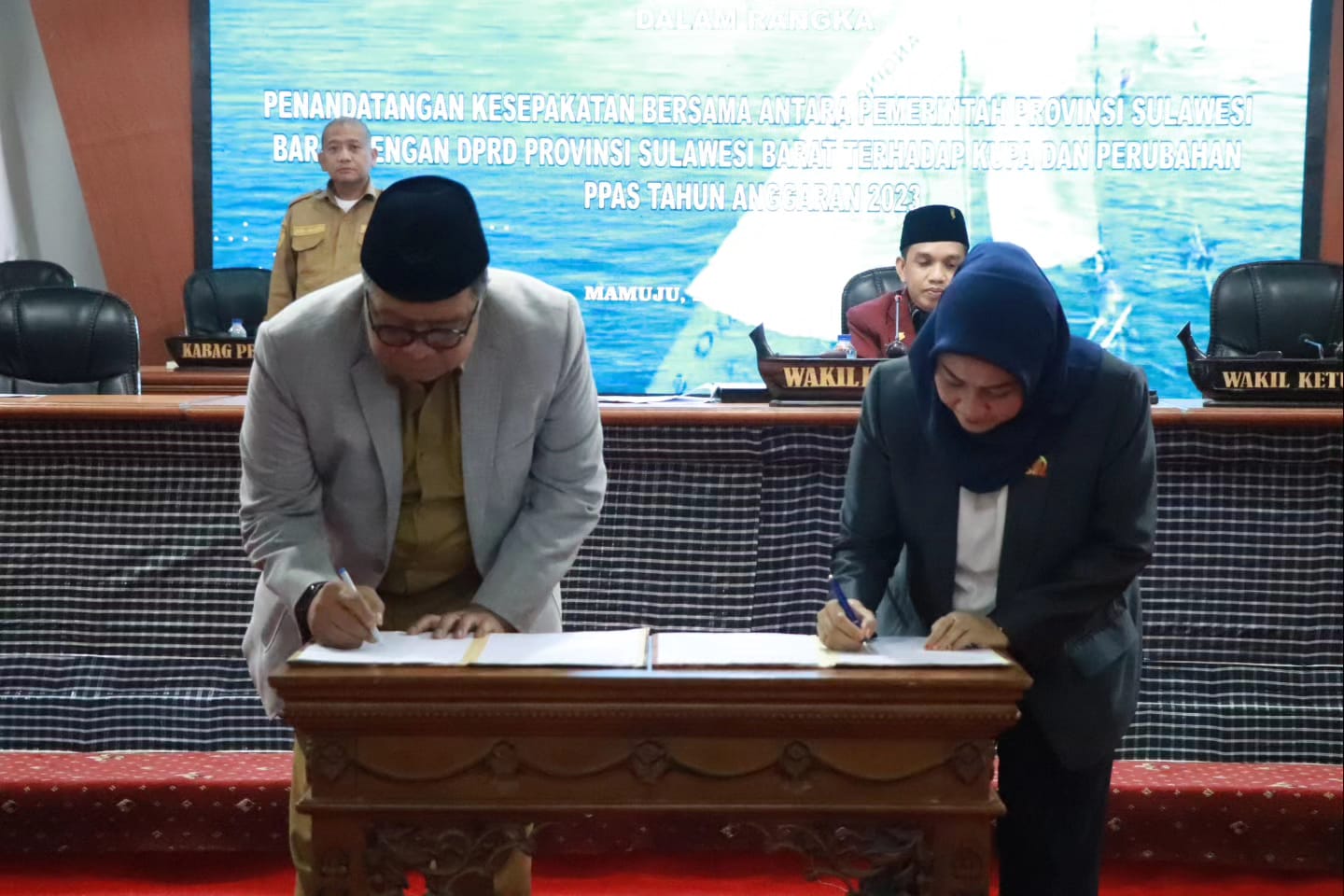 MAMUJU, RAKYATSULBAR.COM — Dewan Perwakilan Rakyat Daerah (DPRD) Provinsi Sulaweai Barat (Sulbar) menggelar Paripurna dalam rangka penandatangan nota kesepahaman Kebijakan Umum Perubahan APBD (KUPA) dan Prioritas Platform Anggaran Sementara (PPAS) Tahun Anggaran 2023, dan Penyampaian SK DPRD Sulbar terhadap penyempurnaan Ranperda Pertanggungjawaban Pelaksanaan APBD Tahun Anggaran 2022, di Kantor Sementara DPRD Sulbar.