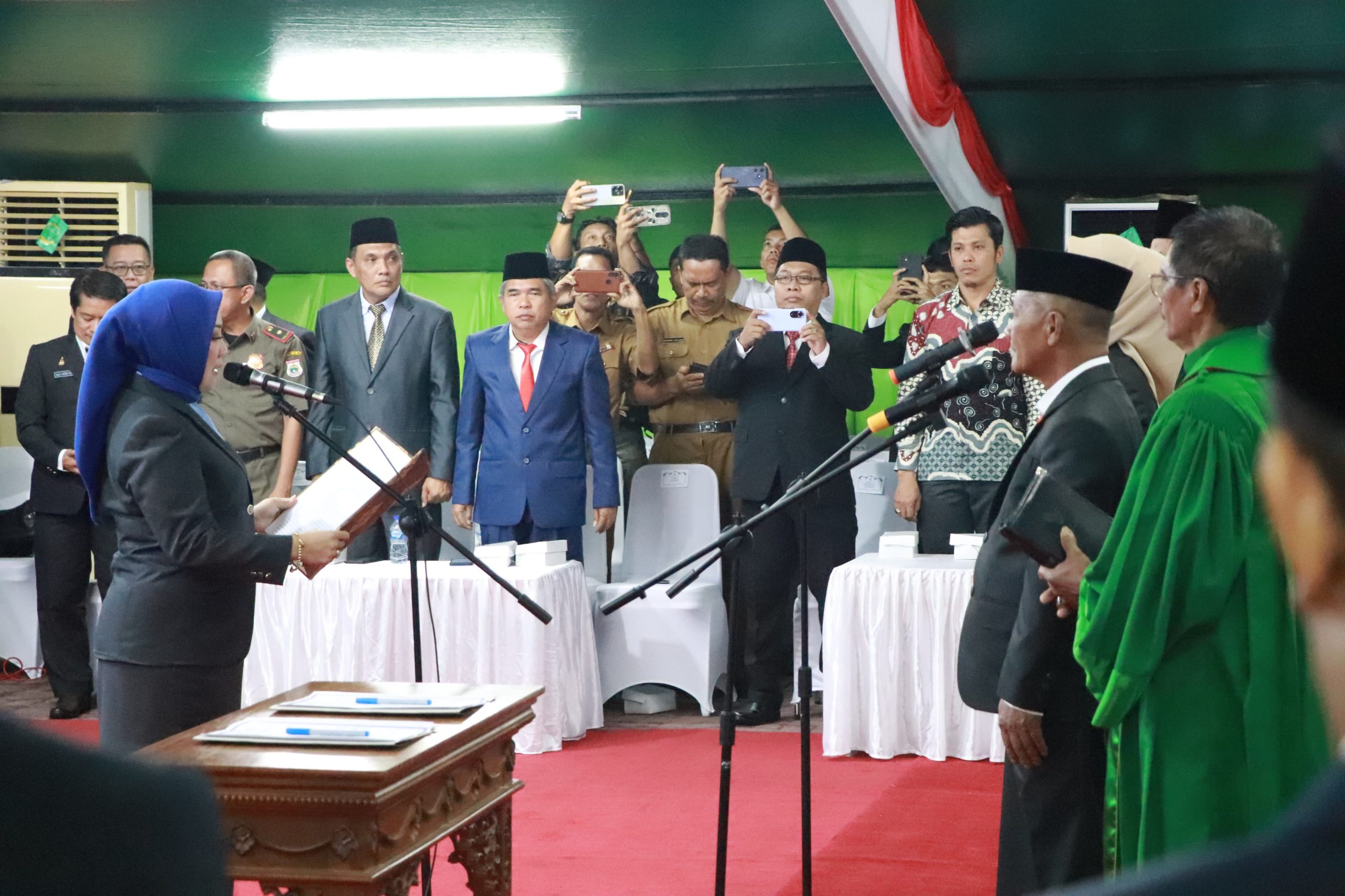 “Hari ini Fitriani dan Ebsan telah dilantik berdasarkan tindak lanjut hasil dari Kemendagri,” kata Suraidah saat memimpin rapat paripurna.