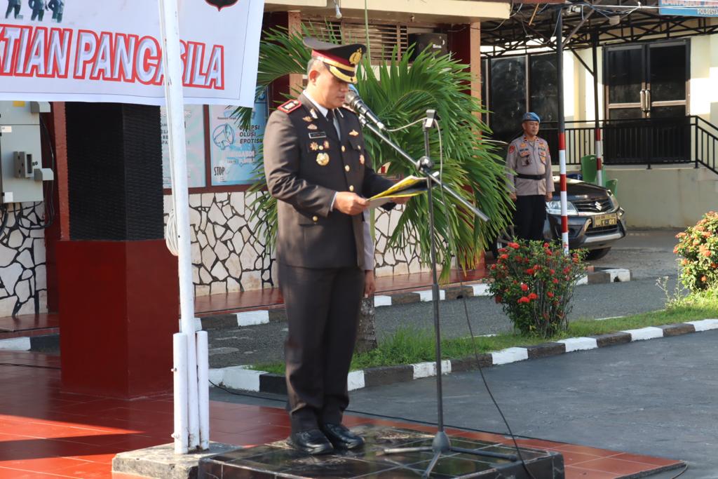 Wakapolresta Mamuju AKBP Arianto memimpin upacar dengan di hadiri Pejabat Utama (PJU ) para Kasie, Perwira dan seluruh personil Polresta Mamuju