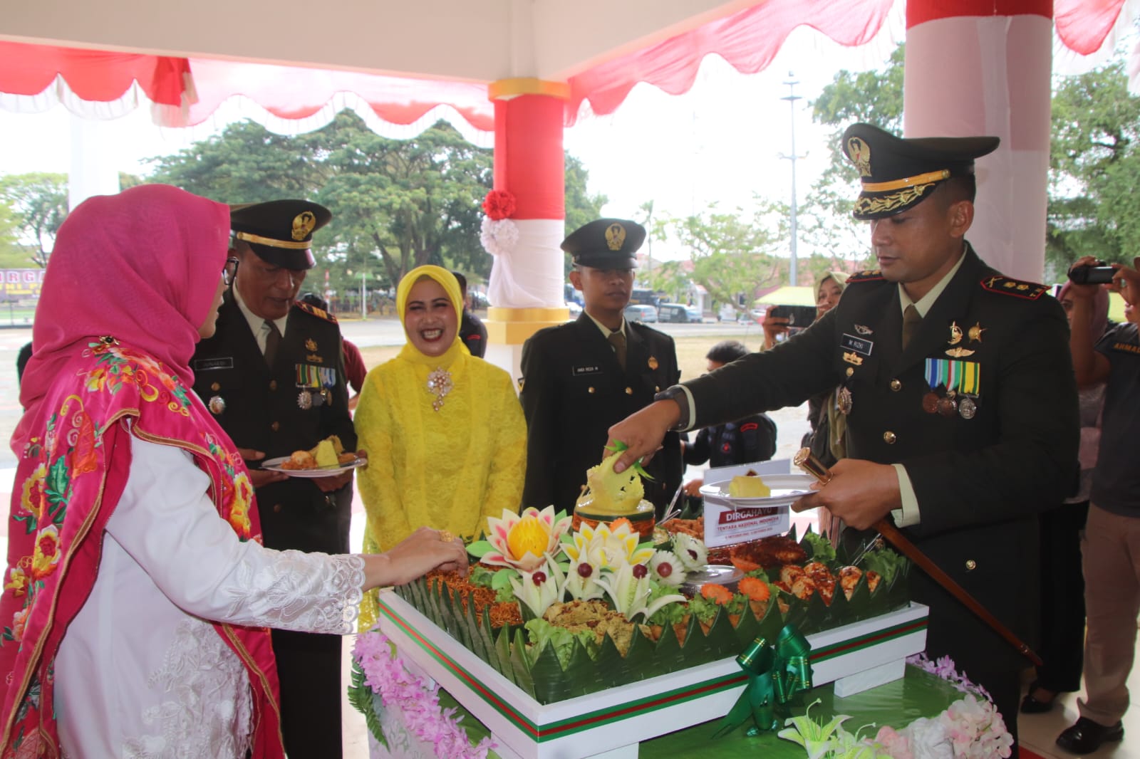 Setelah diterima, Dandim Bone selanjutnya memotong kue tersebut.