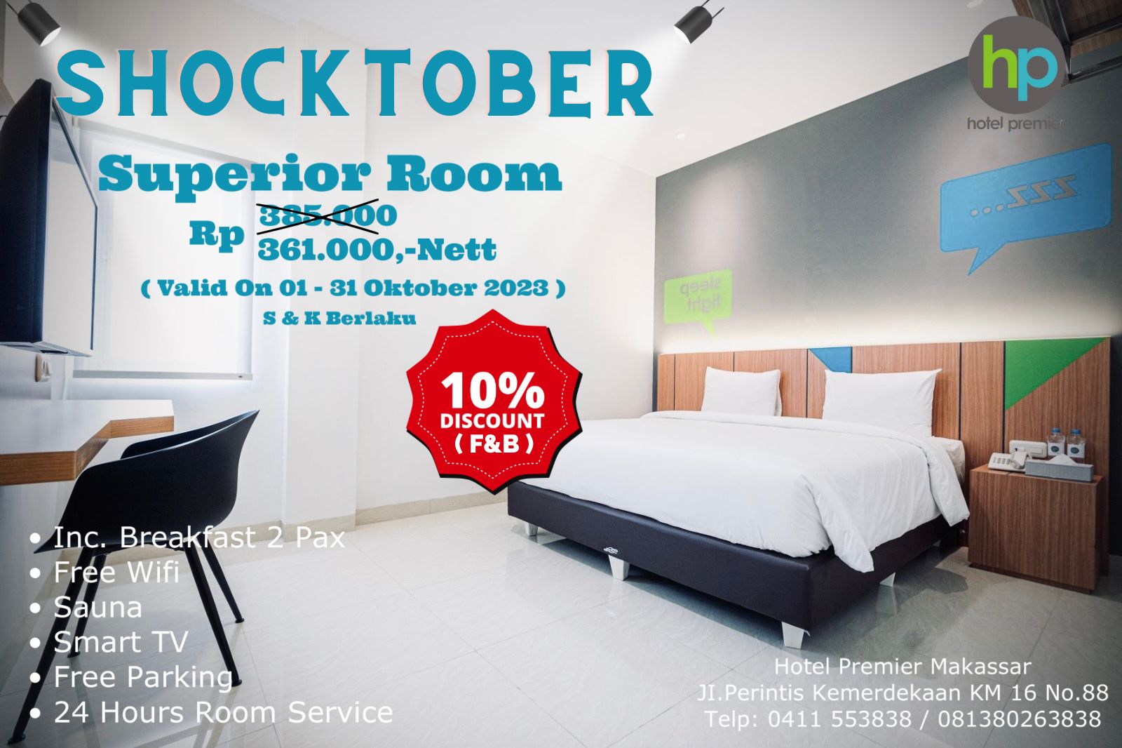 MAKASSAR, RAKYATSULBAR.COM— Hotel Premier Makassar, salah satu hotel disukai di Kota Makassar mengumumkan promo spesial Shocktober yang pasti memikat para pelanggan.