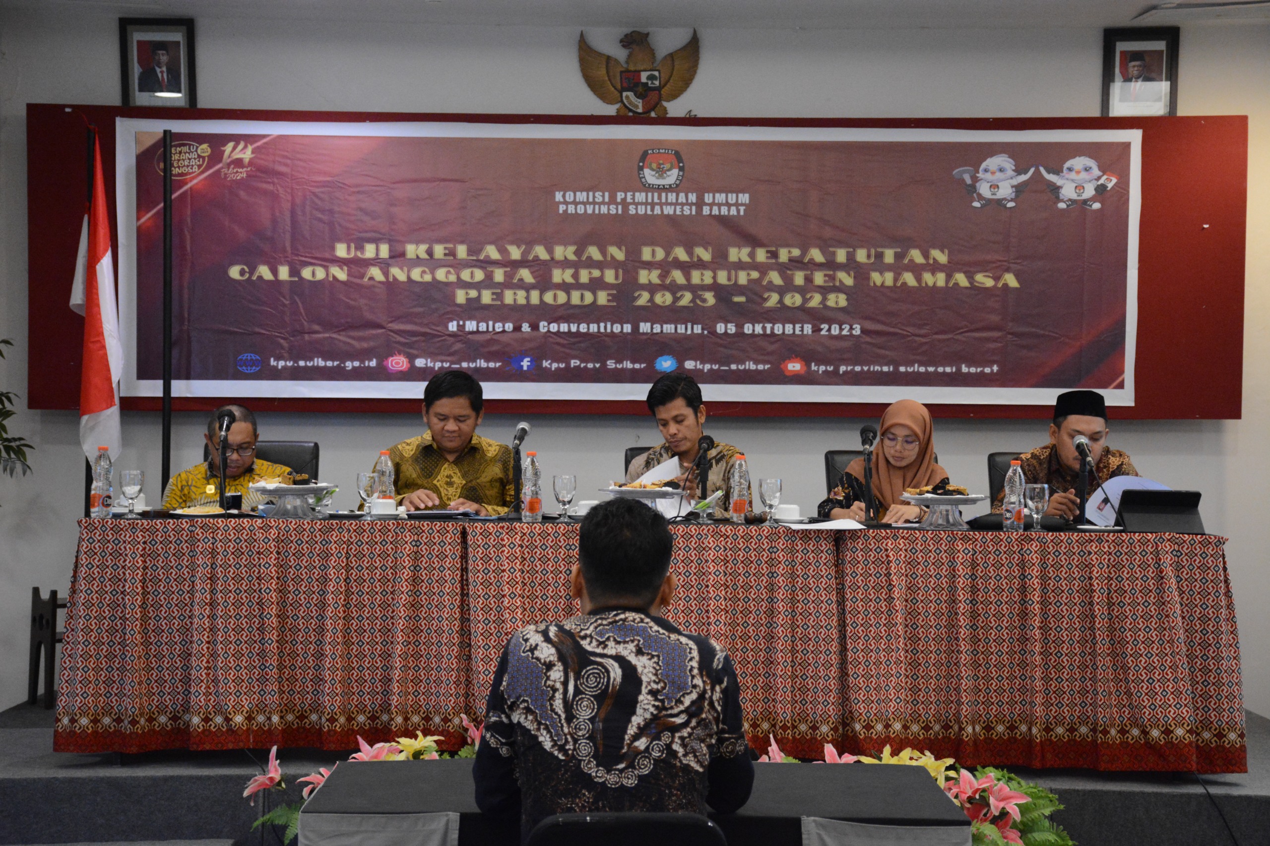 MAMUJU, RAKYATSULBAR.COM — Komisi Pemilihan Umum (KPU) Provinsi Sulawesi Barat (Sulbar) menggelar uji kelayakan dan kepatutan terhadap 10 bakal calon Anggota KPU Kabupaten Mamasa Periode Tahun 2023-2028 di Hotel d’Maleo Mamuju, Kamis, (5/10) malam.