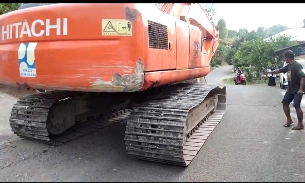 Pasalnya, dalam Vidio terlihat jelas alat berat jenis Excavator melintasi ruas jalan tanpa pengaman dan alas, mengakibatkan sebagian jalan terkelupas dikarenakan rantai excavator yang menyentuh aspal secara langsung.