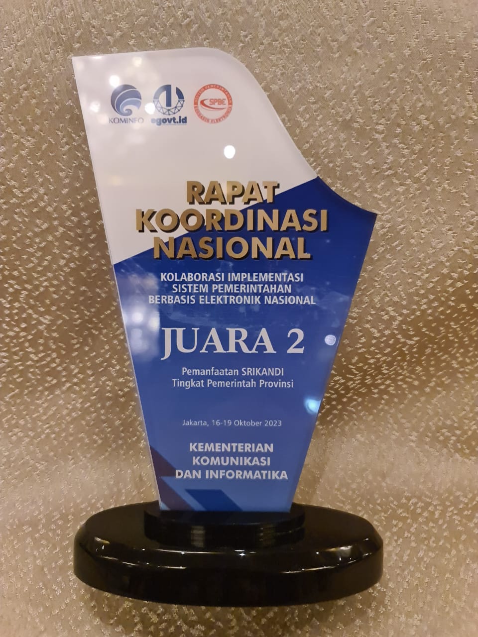 Kali ini Pemprov Sulbar mendapat penghargaan dari Kementrian Kominfo sebagai instansi terbaik kedua dalam pemanfaatan Srikandi tingkat Pemerintah Provinsi tahun 2023. Penghargaan diserahkan di Jakarta, 17 Oktober 2023.