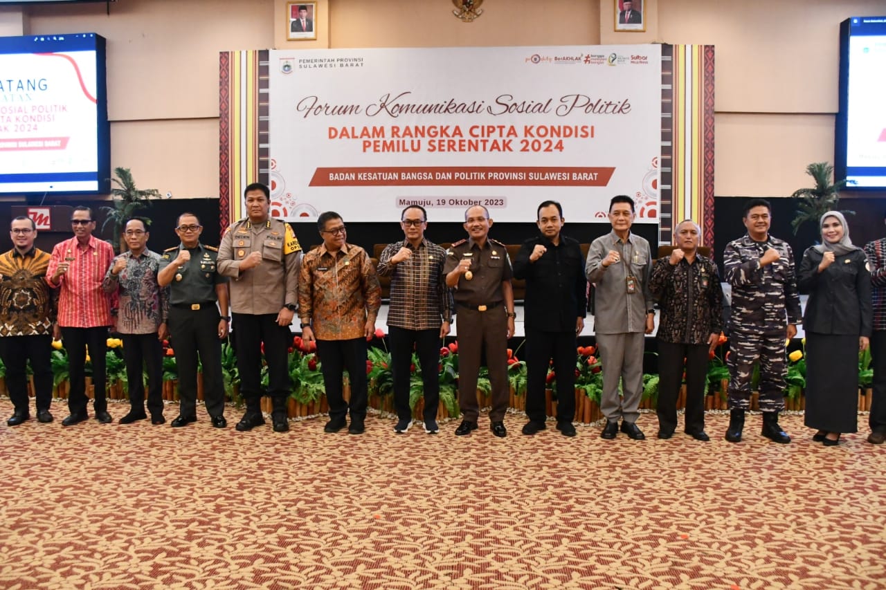 MAMUJU, RAKYATSULBAR.COM – Pemprov Sulbar melalui Badan Kesatuan Bangsa dan Politik (Kesbangpol) Sulbar melaksanakan komunikasi sosial politik dalam rangka cipta kondisi Pemilu serentak 2024 di Hotel Maleo, Kamis (19/10).