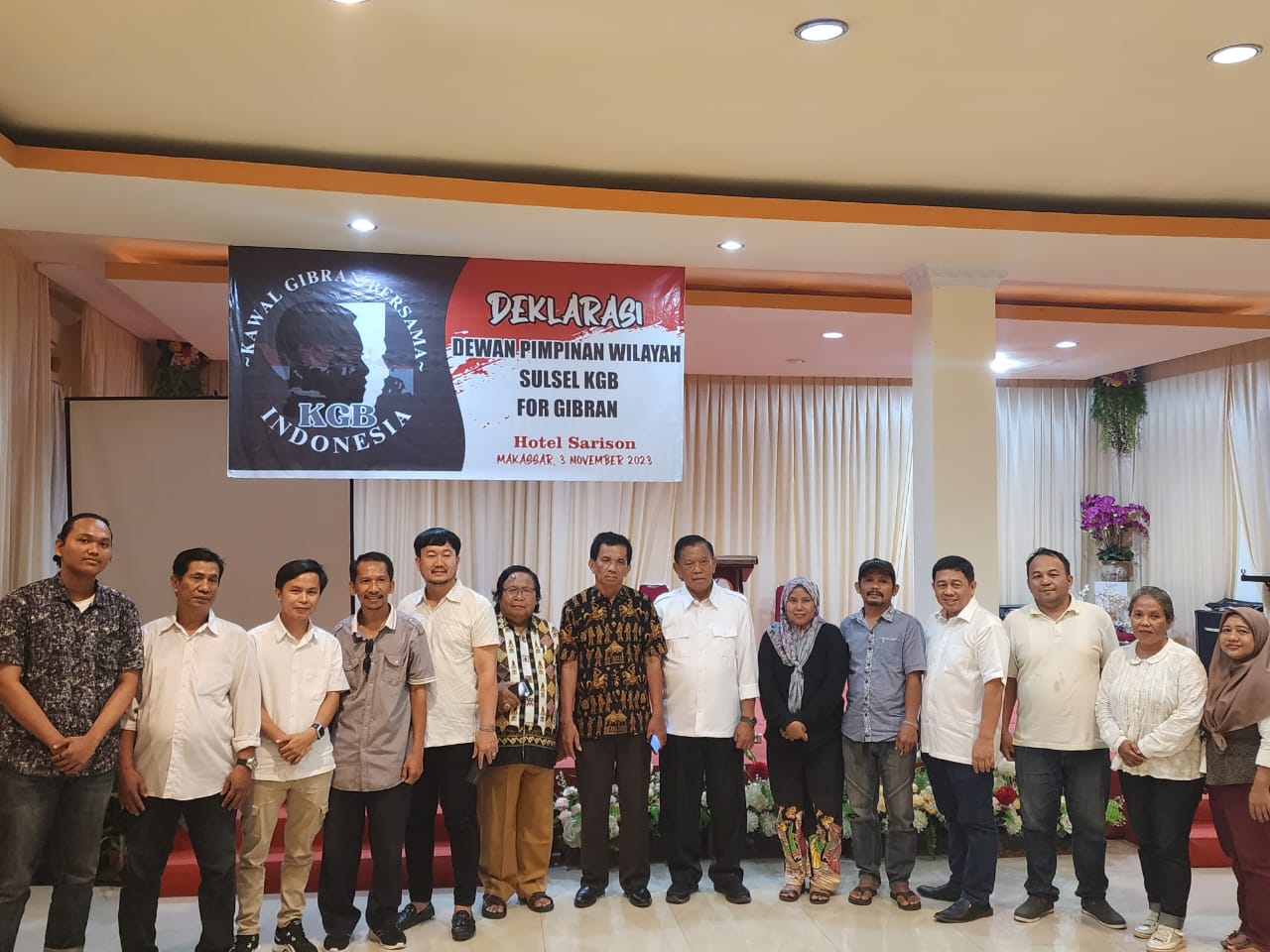 MAKASSAR, RAKYATSULBAR.COM – Dewan Pimpinan Wilayah (DPW) Kawal Gibran Bersama (KGB) Sulsel melakukan deklarasi KGB for Gibran di Hotel Sarison, Jl. Perintis Kemerdekaan Makassar, Sabtu (4/11) malam.