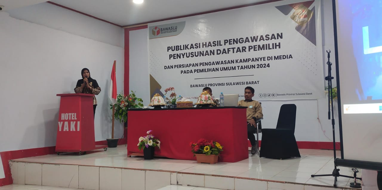 MAMUJU, RAKYATSULBAR.COM- Kepala Dinas Komunikasi Informatika, Persandian dan Statistik (Kominfopers) Sulbar Mustari Mula menjadi narasumber pada kegiatan yang digelar Bawaslu Sulbar, di Aula Hotel Yaki, Kamis, (16/11).