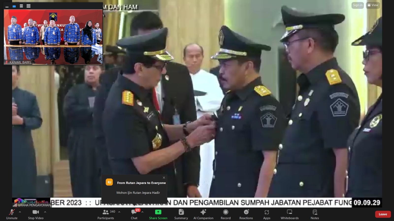 PANGKALPINANG, RAKYATSULBAR.COM– Kepala Kantor Wilayah (Kakanwil) Kementerian Hukum dan HAM Kepulauan Bangka Belitung (Harun Sulianto), ikuti Pelantikan dan Pengambilan Sumpah Jabatan Pejabat Fungsional Ahli Utama, Pimpinan Tinggi Pratama dan Pejabat Administrasi Kementerian Hukum dan Hak Asasi Manusia, secara virtual dari Ruang Rapat Kantor Wilayah, Rabu (29/11).