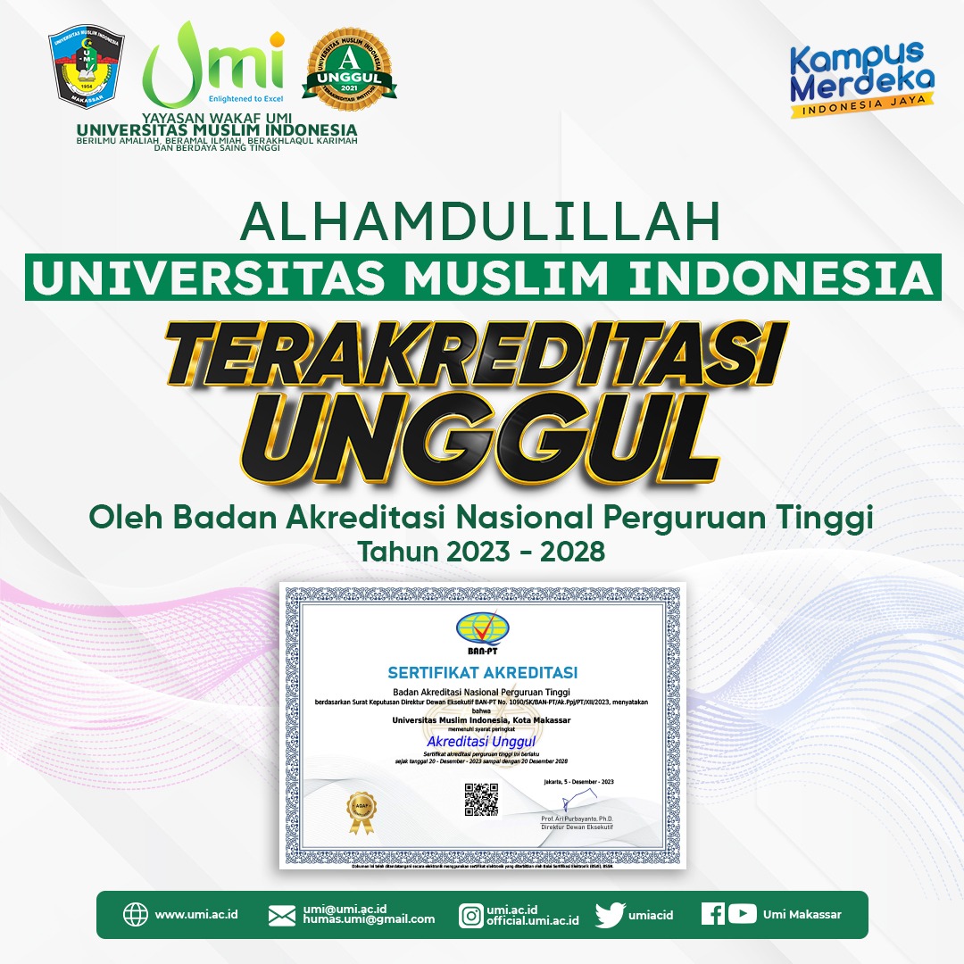 MAKASSAR, RAKYATSULBAR.COM– Universitas Muslim Indonesia (UMI) kembali unjuk gigi dalam meningkatkan kualutas dan pengembangan mutu. Hal itu diwujudkan melalui predikat Akreditasi Unggul.