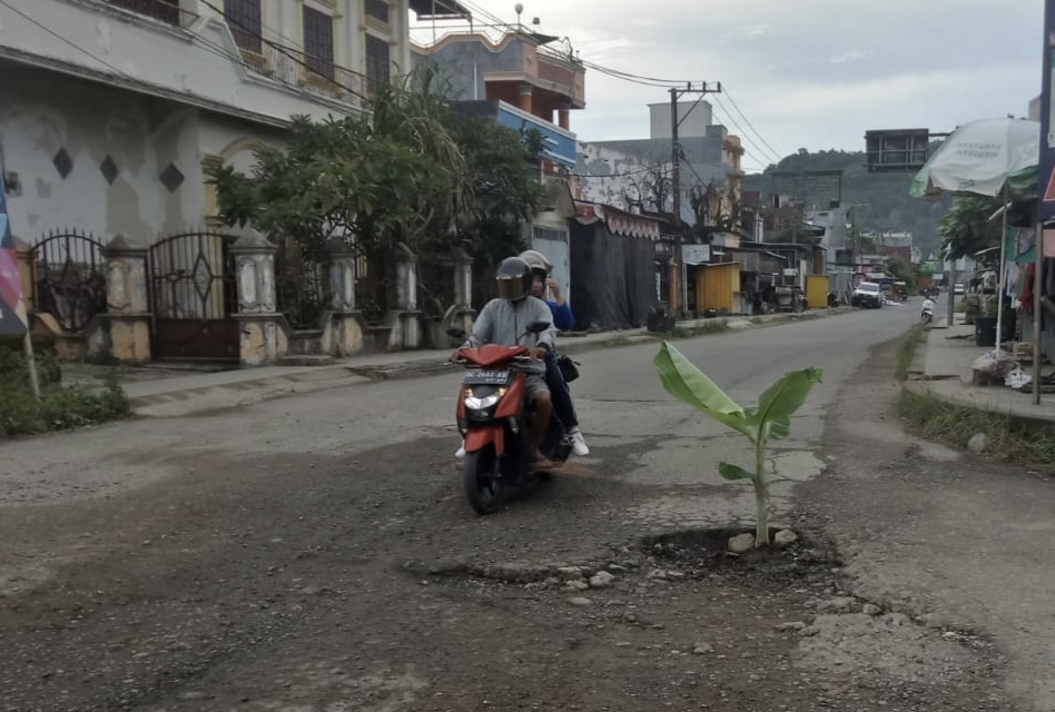 Irma, menambahkan, aksi penanaman pohon pisang bentuk protesnya kepada pemerintah, Karena tidak memperhatikan jalan yang sudah lama rusak parah.