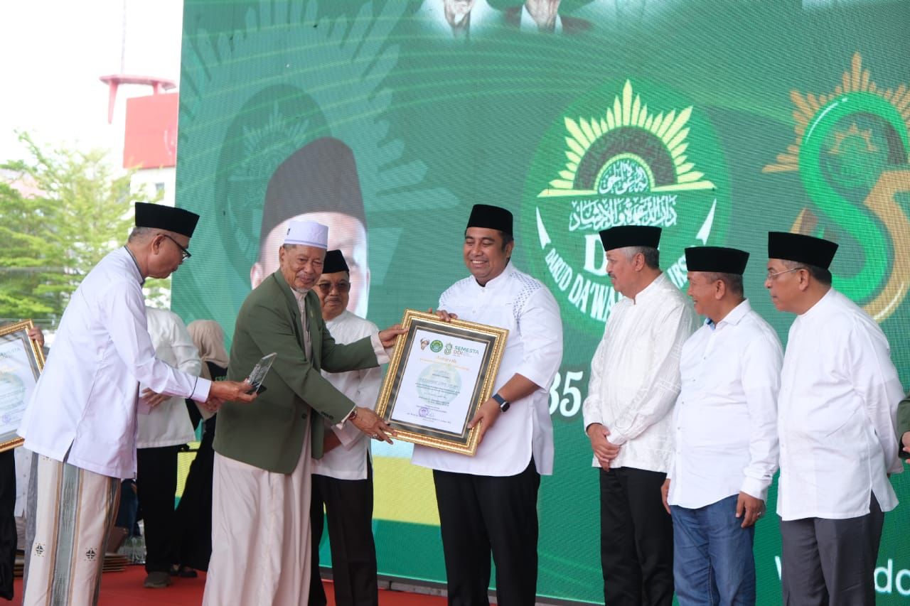 MAKASSAR, RAKYATSULBAR.COM– Bupati Maros Chaidir Syam menerima Penghargaan dari Pengurus Besar Darud Dakwah wal Irsyad (DDI) pada peringatan Milad 85 Tahun DDI yang diperingati di Lapangan Karebosi Makassar, Minggu 17 Desember 2023.