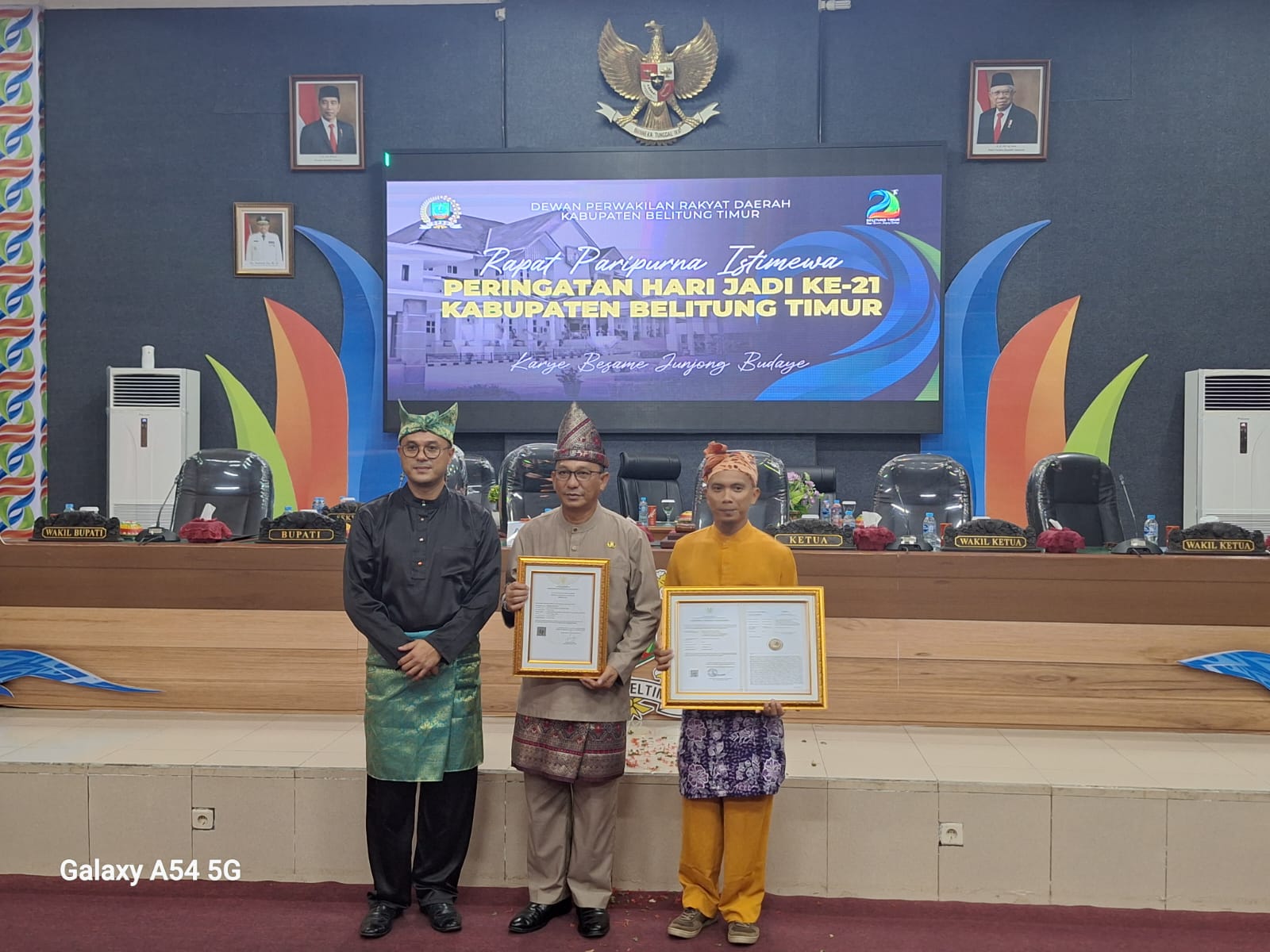 BELITUNG TIMUR, RAKYATSULBAR.COM – Kantor Wilayah Kementerian Hukum dan HAM Kepulauan Bangka Belitung serahkan Sertifikat Indikasi Geografis Madu Teran Belitong Timur kepada Pemerintah Daerah Belitung Timur pada Hari Jadi Kabupaten Belitung Timur ke-21 di Kantor DPRD Belitung Timur, Sabtu (27/1/24).