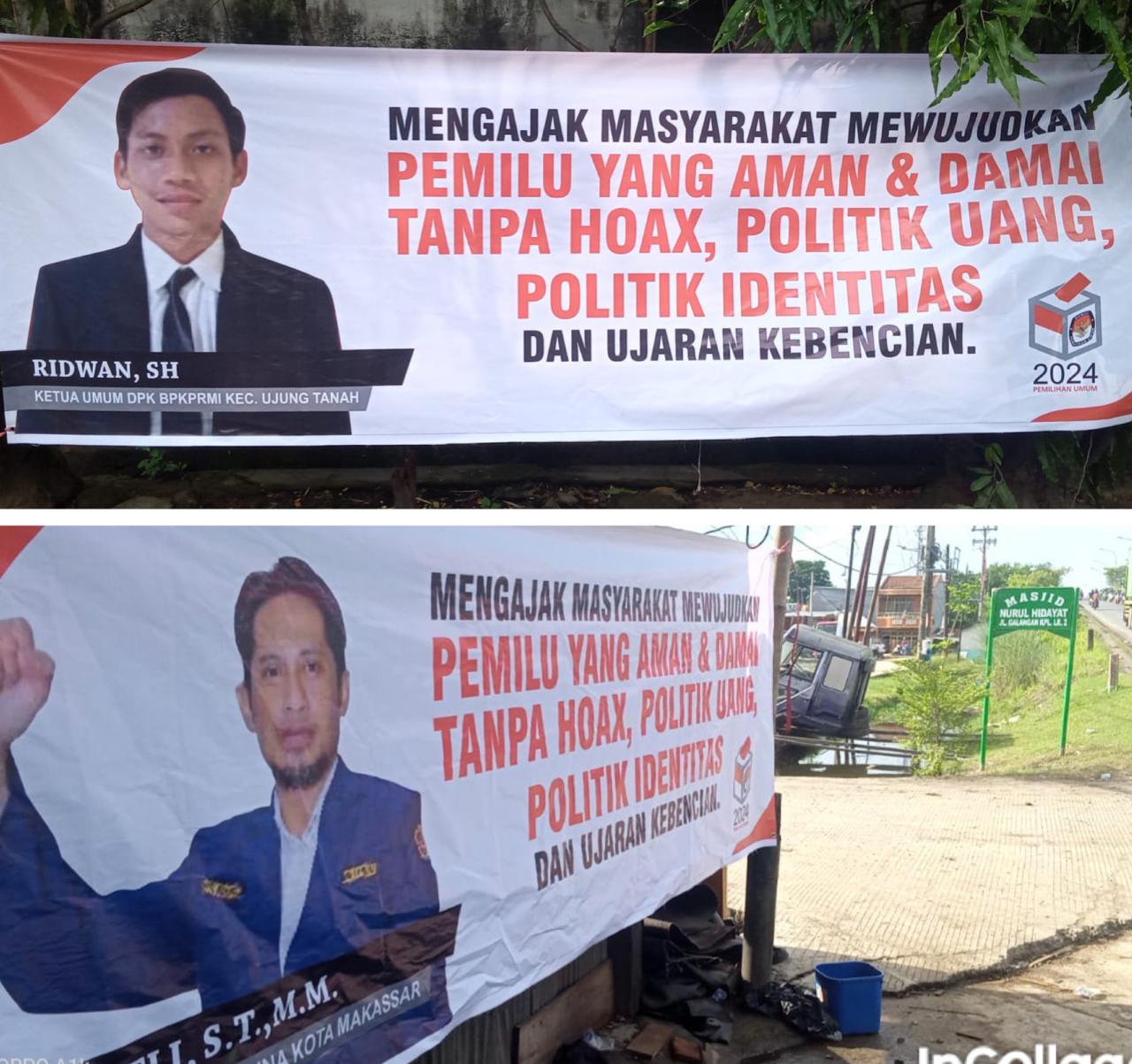 Sejumlah OKP dan organisasi sosial melakukan kampanye pemilu damai dan ajakan menggunakan hak pilih lewat spanduk yang mereka pasang di beberapa kecamatan di Kota Makassar.