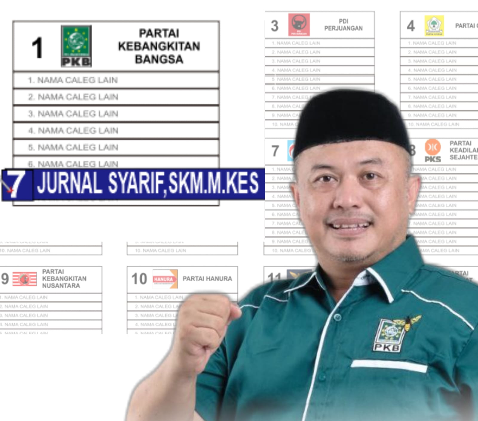 Salah satu Caleg PKB Jurnal Syarif majundi dapil IV, meliputi Kabuoaten Jeneponto, Bantaeng, Selayar. Ia optimis duduk di DPRD Provinsi Sulsel, pada Pemilihan Legislatif (Pileg) 2024.
