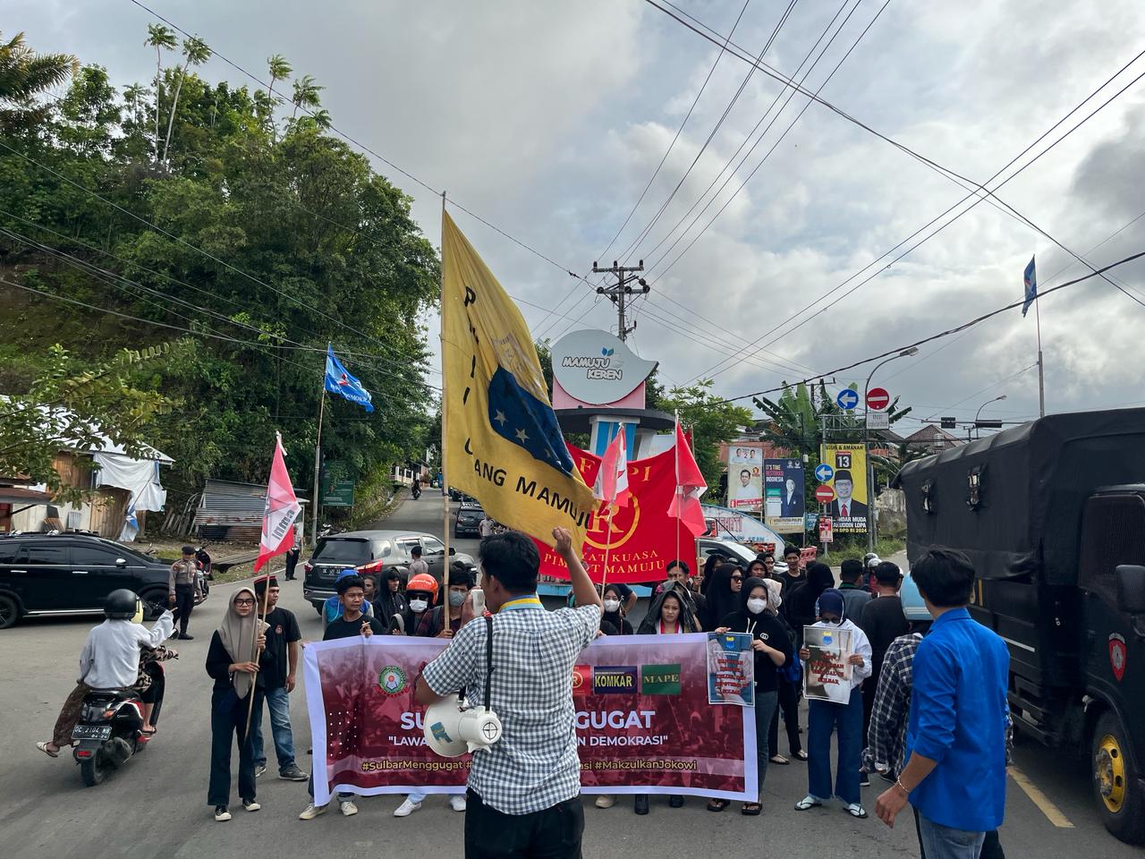 Pernyataan itu dituangkan dalam aksi unjuk rasa dan pembacaan sikap di Simpang Lima Kota Mamuju, Sulawesi Barat (Sulbar), Sabtu (10/2/24).