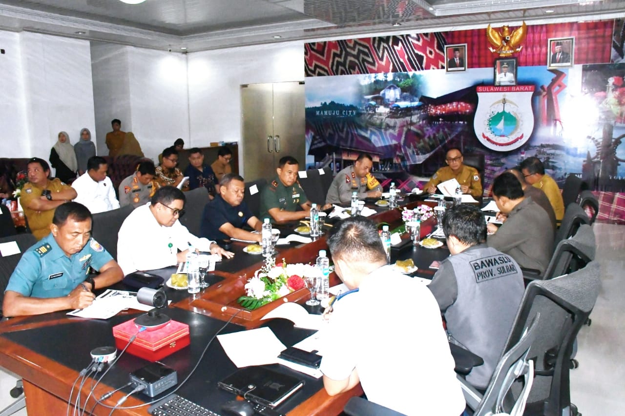 MAMUJU, RAKYATSULBAR.COM — Pemprov Sulbar melakukan Rapat Forum Komunikasi Pimpinan Daerah (Forkopimda) Sulbar membahas Persiapan Akhir Pelaksanaan Pemilu Serentak 2024, Kantor Sementara Gubernur, Jl. H. Abd. Malik Pattana Endeng, Rangas, Mamuju, Senin (12/2/24).