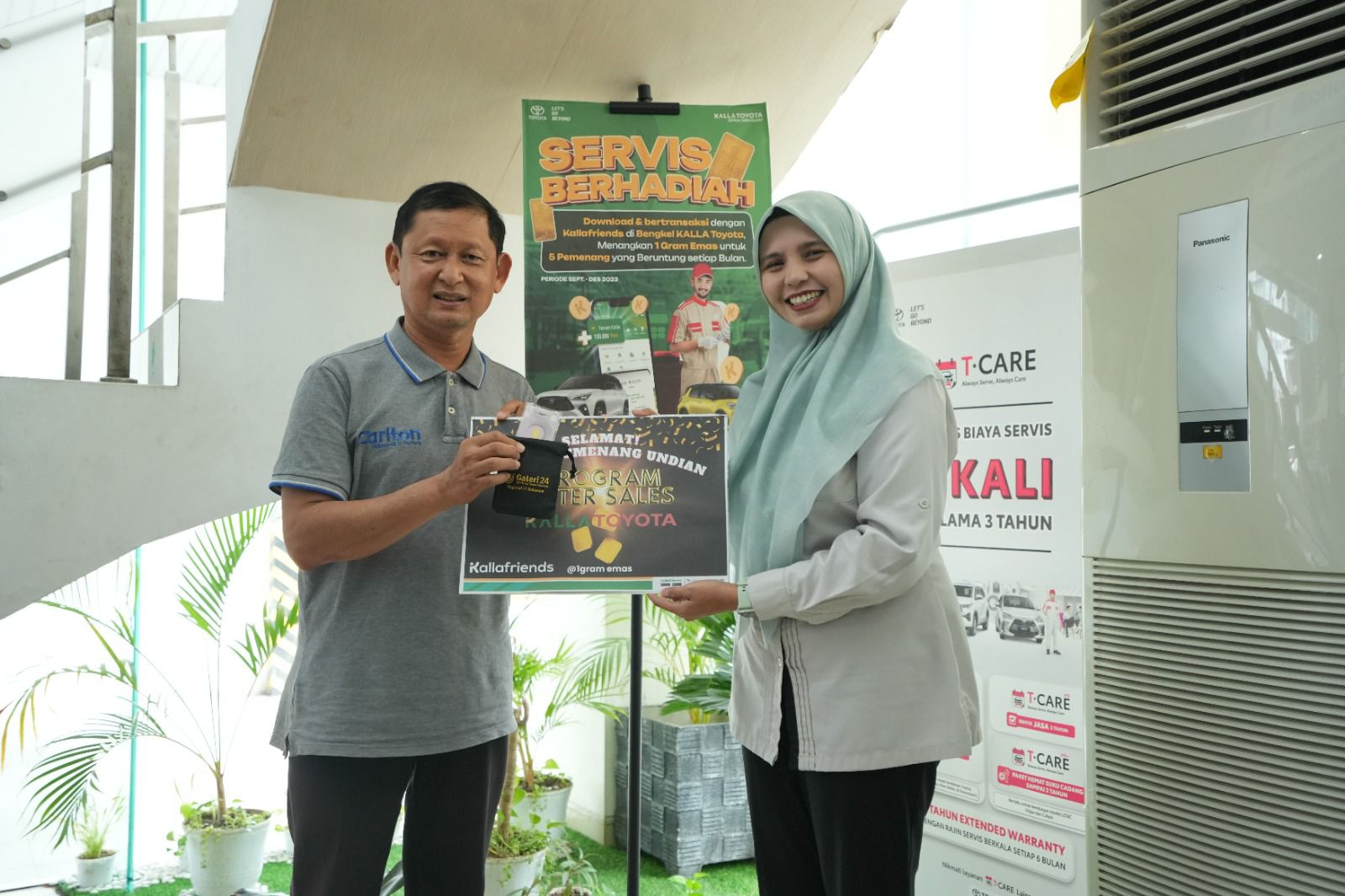 Pelanggan yang beruntung ini pelanggan yang melakukan servis di bengkel resmi Kalla Toyota melalui aplikasi Kallafriends periode September – Desember 2023 lalu dengan periode pengundian Februari – Maret 2024 pada event Customer Gathering Online. Masing-masing pemenang berhak membawa pulang hadiah masing-masing satu gram emas.