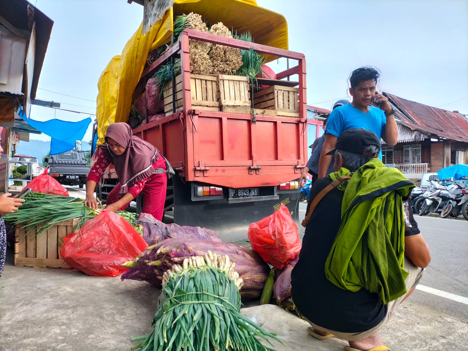 Bapak Rian pemilik sayur sudah menunggu lebih dulu. Mobil bercat merah menutupi seluruh badan mobil itu sesak oleh beragam sayuran dan rempah seperti kubis, jagung, bawang prei, tomat, daun sop, cabai hingga bawang merah.